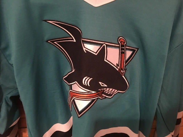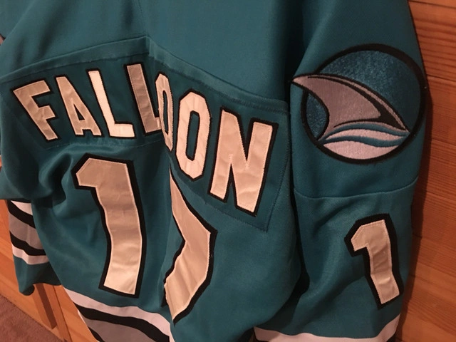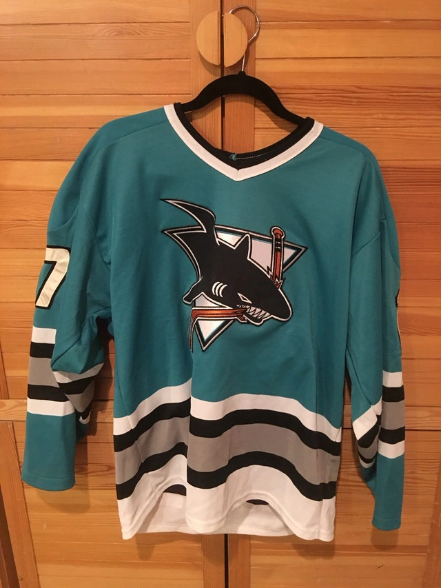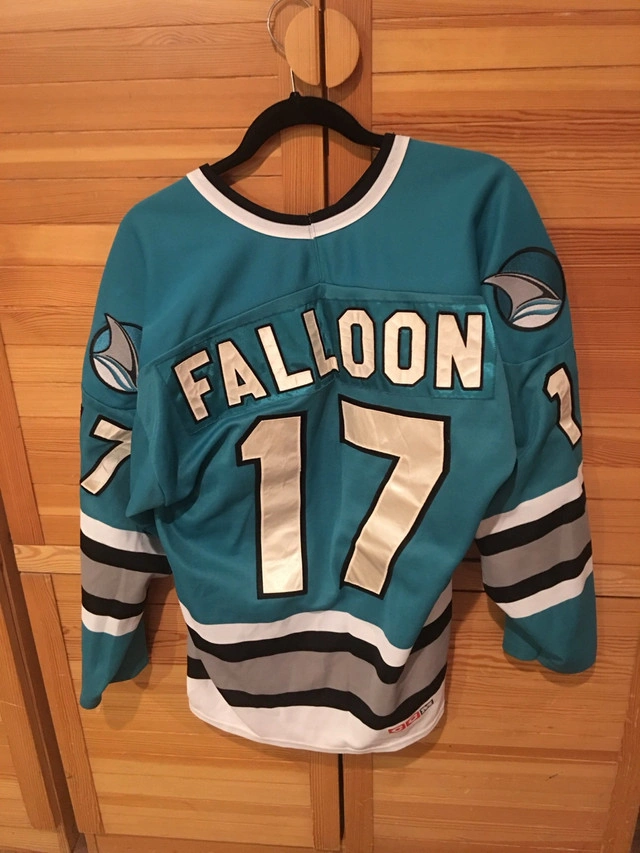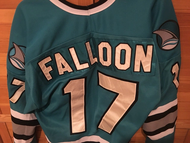 Classic San Jose Sharks Hockey Jersey. Pat Falloon #17. Triple stitched lettering.