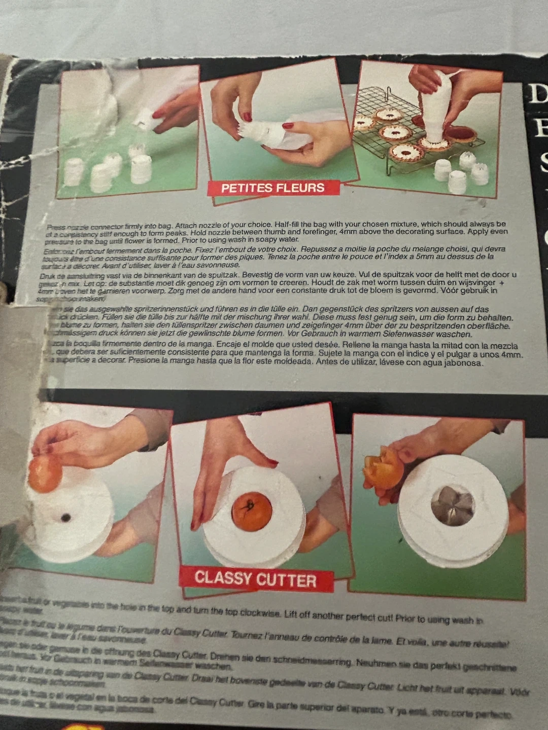 Classy Cabaret The Good Cooks Companion set. It includes various nozzle connectors and a Classy Cutter for creating decorative food items. Perfect for adding a special touch to your culinary creations! Great for party or gathering with family and friends.
