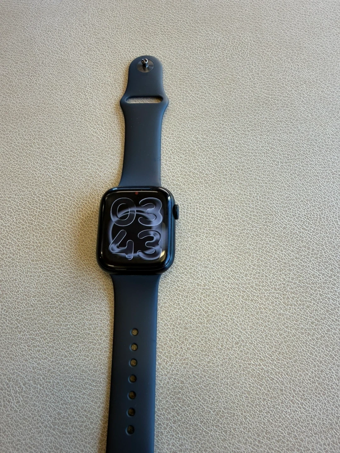 Apple Watch series 9 45mm in black. It's in great condition and ready for a new owner! No single scratch, comes with its case and charger!