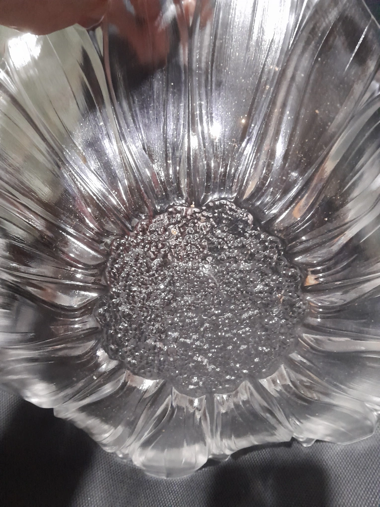 Selling a lovely clear glass decorative bowl! It's in great condition and would look beautiful on a table or shelf. Its unique design adds a touch of elegance to any room. very lrg.
