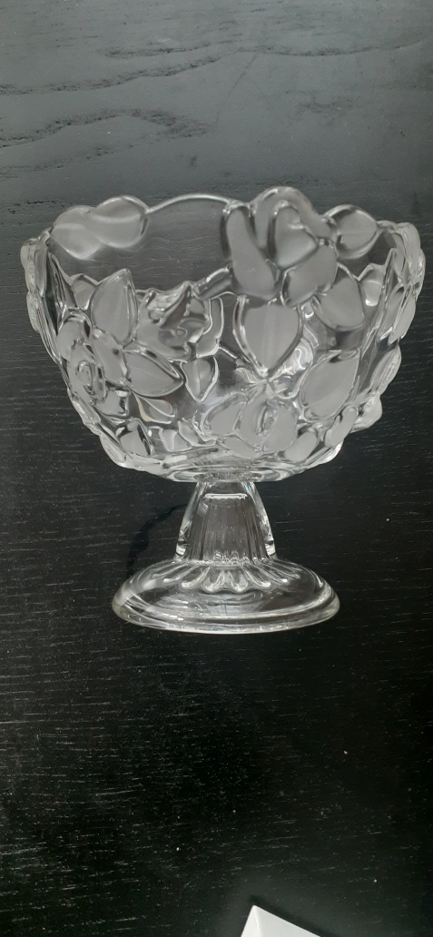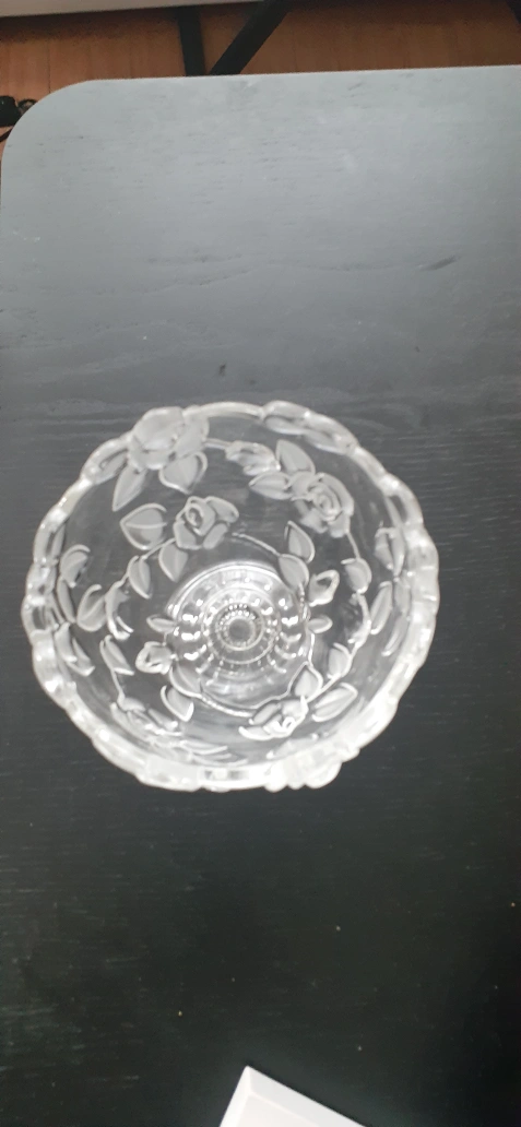 Selling a lovely clear glass bowl featuring a delicate floral design. It's in great condition and would make a charming addition to any table or display