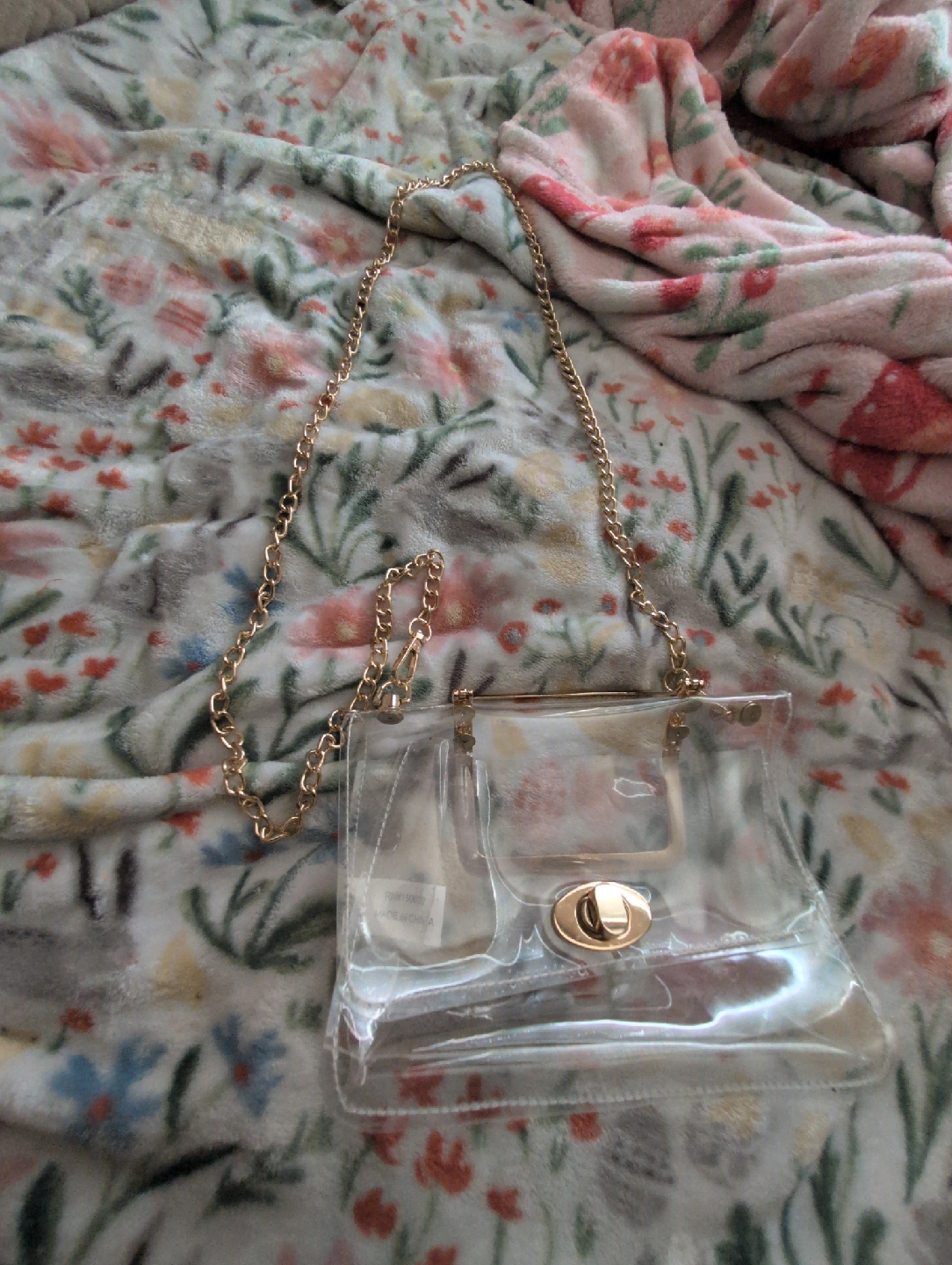 Selling a clear PVC handbag with a gold chain strap! It's in great condition and perfect for adding a unique touch to your outfit. The clear design is super trendy and versatile. perfect for those venues that are "clear bags only" bought for suicide boys concert and ended up using different bag