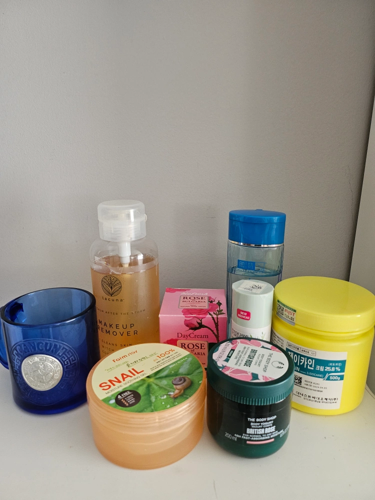 Clearance !!!Selling a collection of skincare items! Includes Lacuna Makeup Remover, Biofresh Rose Day Cream, Farm Stay Snail Moisture Soothing Gel, and The Body Shop British Rose body yogurt. Great opportunity to try out different products!