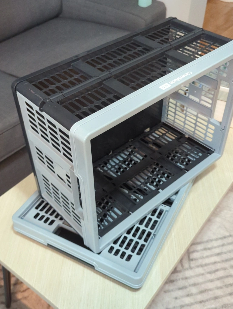 I'm selling a set of 2 CleverMade collapsible storage bins. They're in great shape and ready to help you organize! These bins are perfect for decluttering your space and are easy to store when not in use. They are not great with heavy items, but are great for storage or moving light objects!