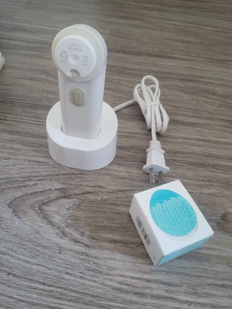 Selling a Clinique Sonic System acne solutions deep cleansing brush! It comes with the charging base and a new brush head. model has discontinued, but you can still get the brush replacement with clique.