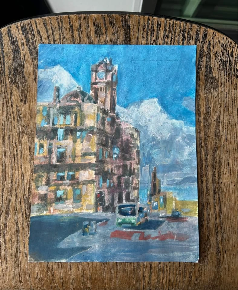7.5 inches width x 10 inches height (close to A4 size). Acrylic on mixed media paper. This is an original acrylic painting. It will be handed over to you unframed, protected with glassine paper between two boards. Since this is an older work (2019) it has not been signed but I can sign upon request. Frame is not included, but I will supply framing suggestions if needed. Pickup in Surrey near King George station.