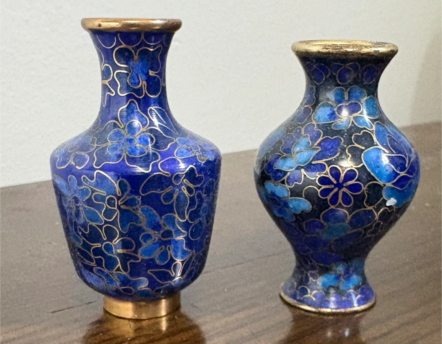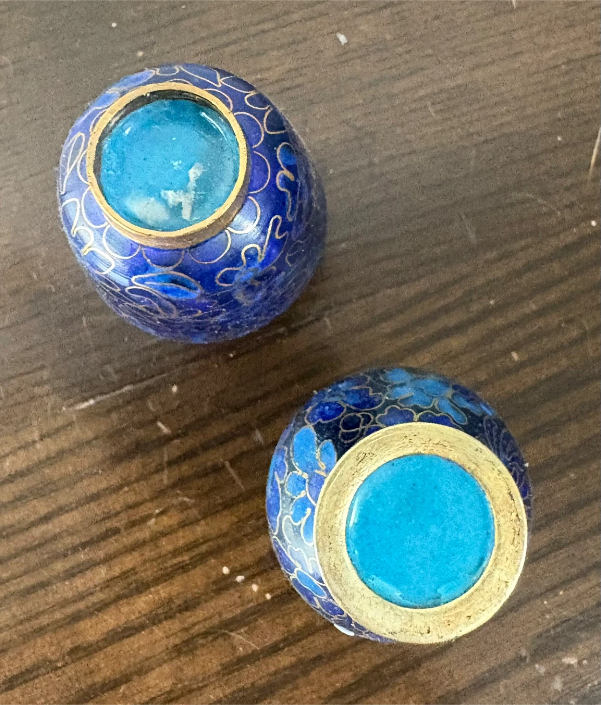 Selling a pair of beautiful cloisonné vases. These vases feature a lovely blue floral pattern with gold accents. They would make a great addition to any home decor!