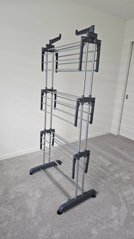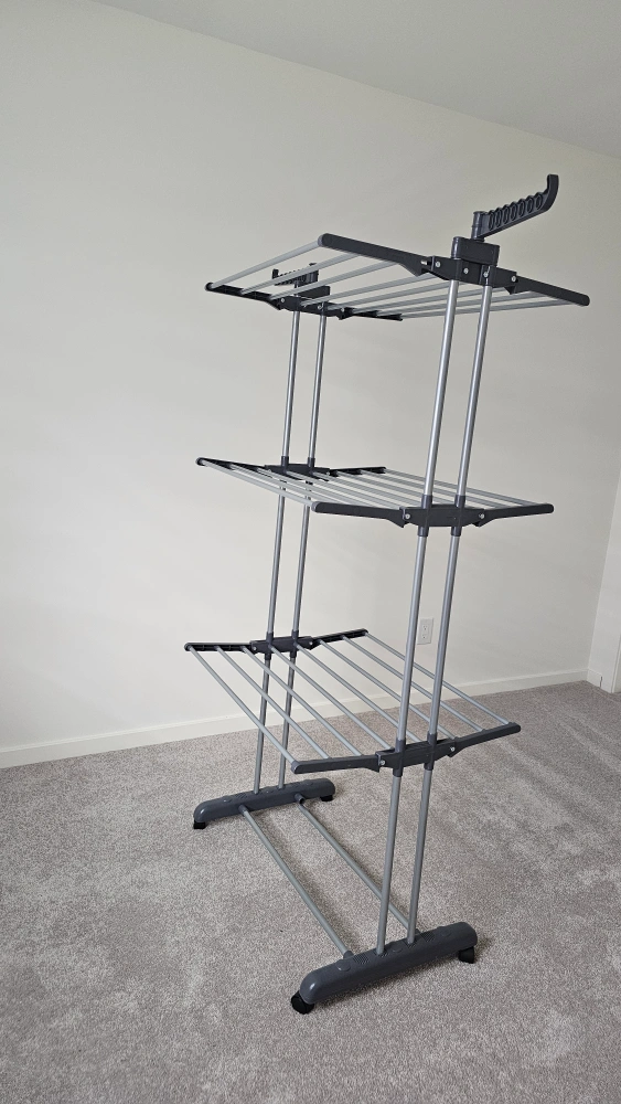 Selling a clothes drying rack in great condition! It's super handy for air-drying clothes, especially during the winter months. It's a grey colour and folds up easily for storage when not in use. Perfect for small spaces!