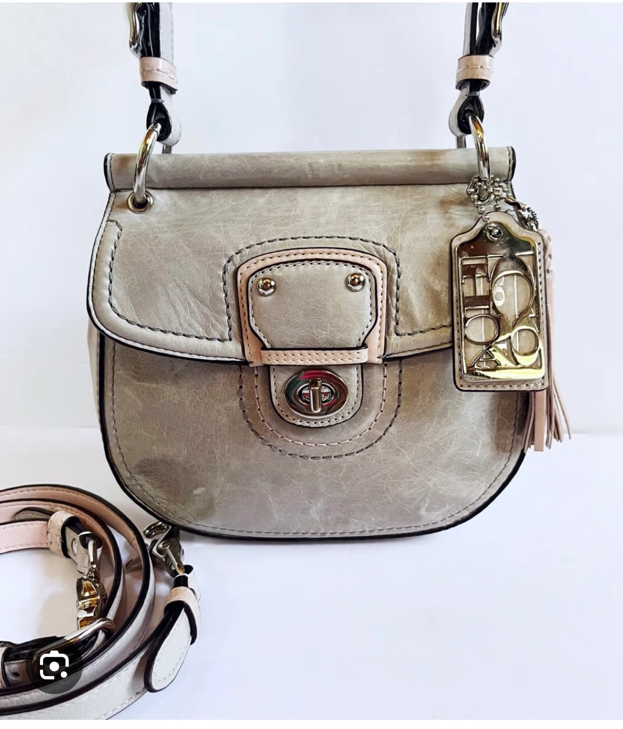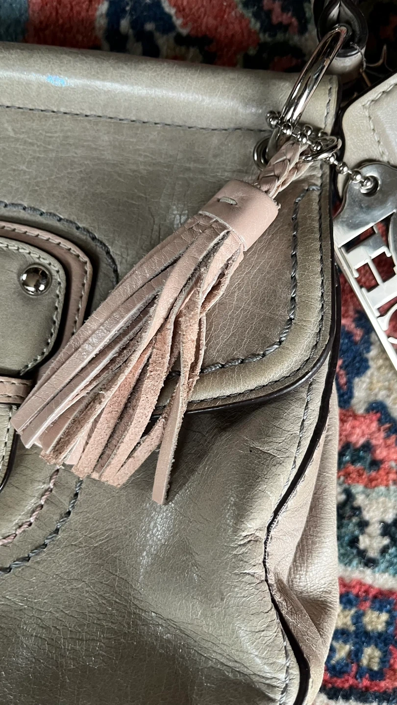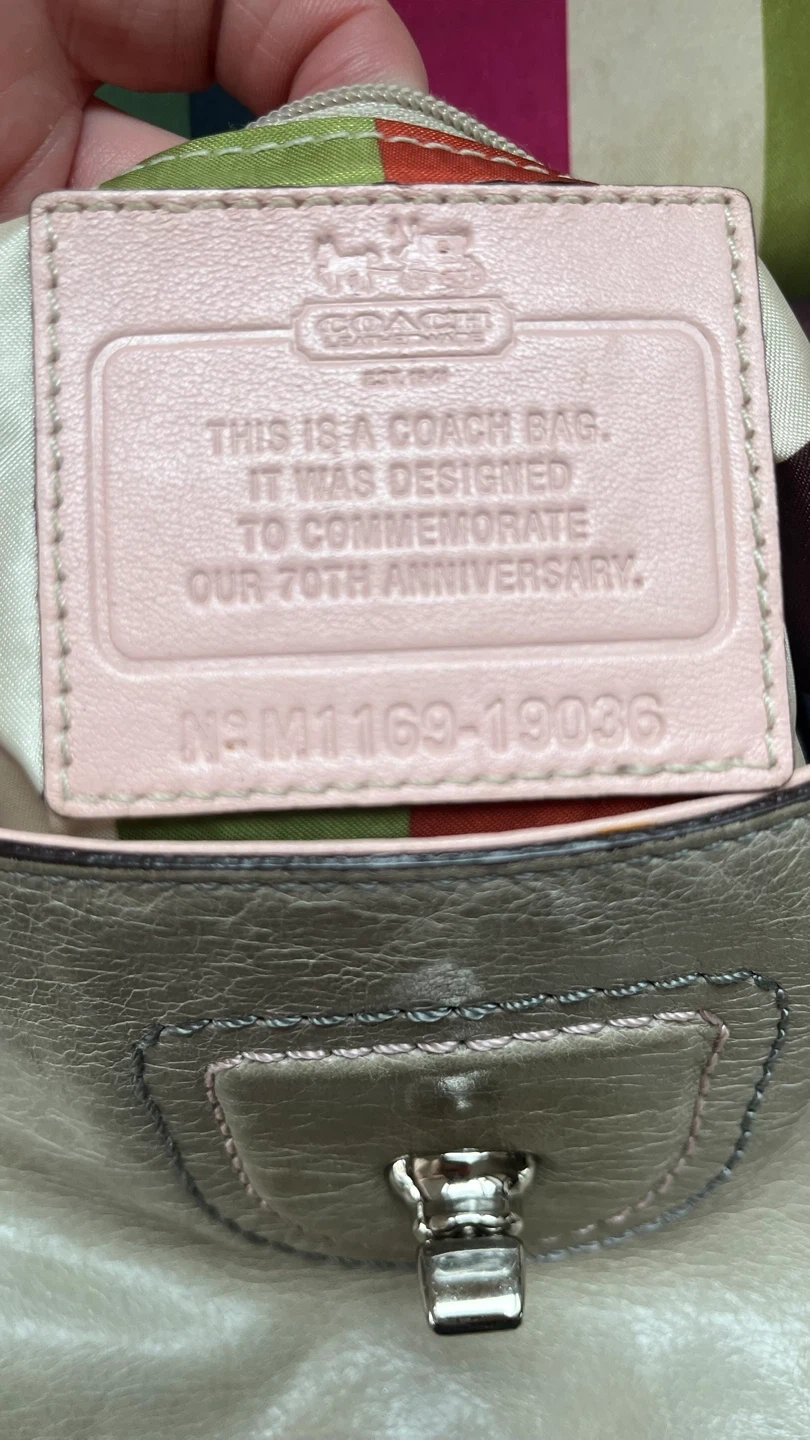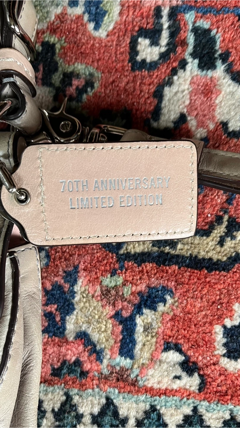 ** only message if you’re serious in buying ** The leather is not dirty it’s just how grey leather looks. Selling a Coach 70th Anniversary Limited Edition handbag. It's a beautiful bag with a unique design. It has a shoulder strap and a shorter handle. Great for everyday use!
