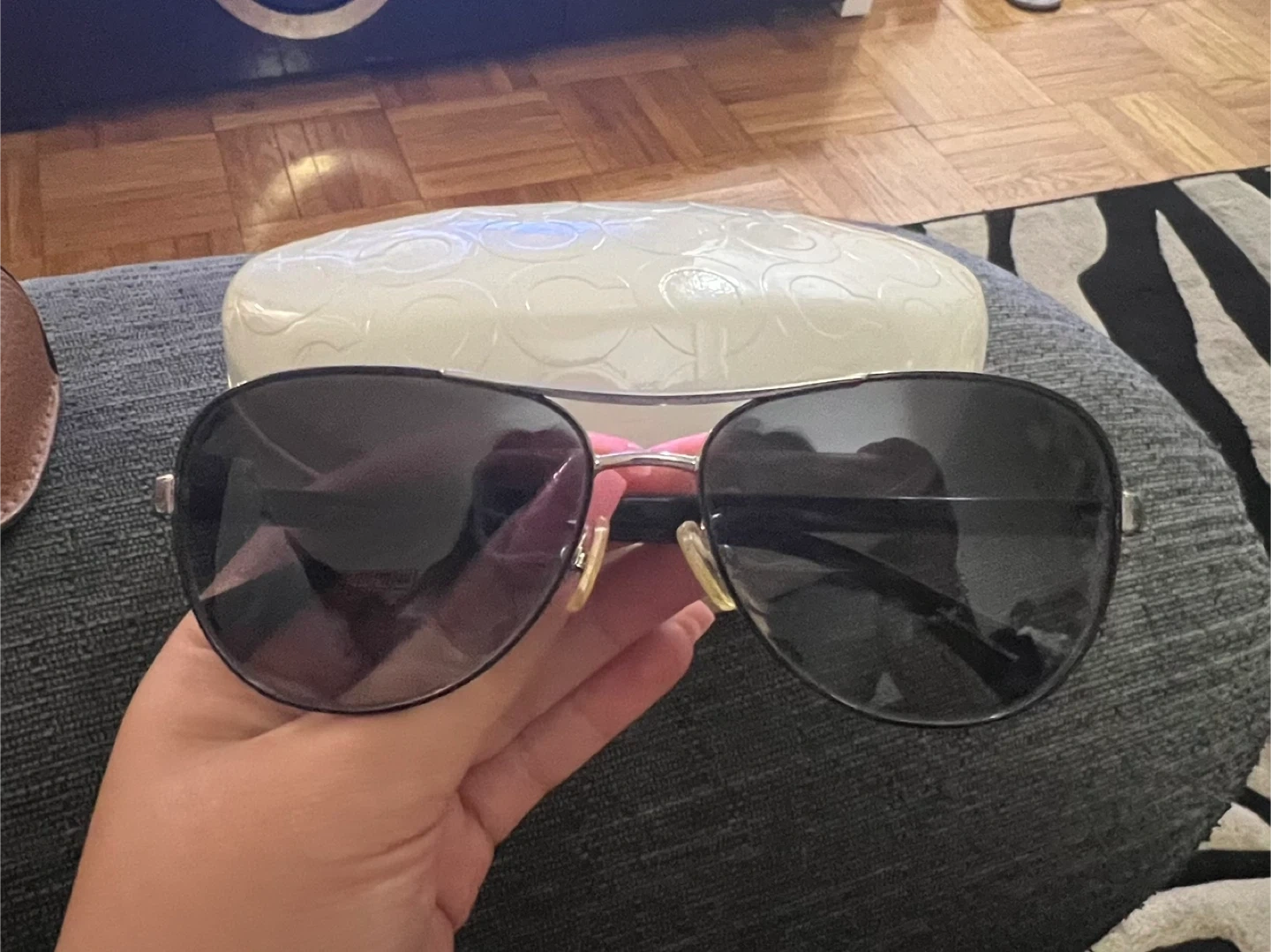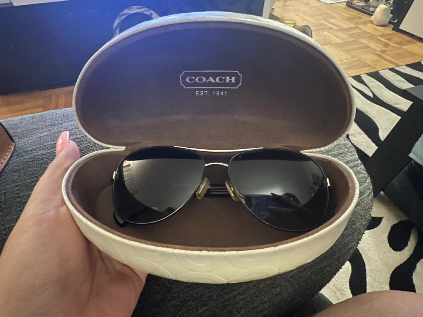 Selling a pair of Coach aviator sunglasses. They come with their original case, which has the Coach logo. These sunglasses are in great condition and ready for a new owner!
