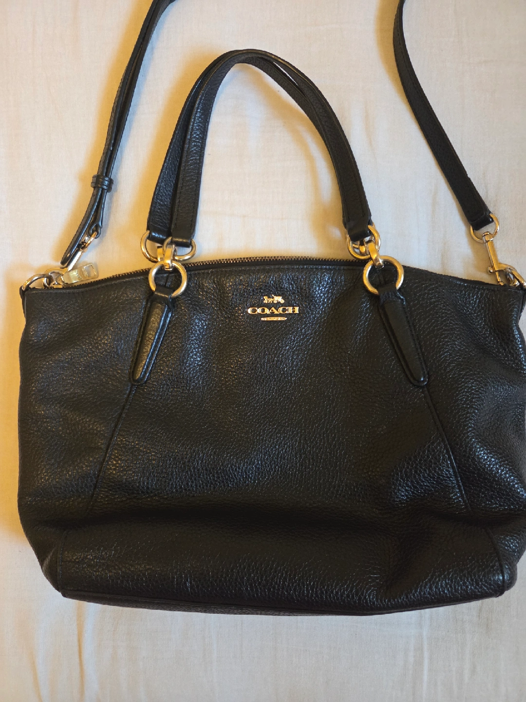 Selling a beautiful black leather Coach handbag! It's in great condition and ready for a new home. The bag features a zipper closure and gold-tone hardware. 30cm x 22cm
