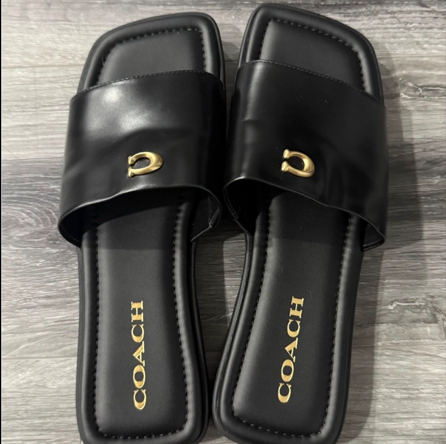 Selling a pair of Coach black leather slides. They're in great condition and super stylish for everyday wear! Perfect for adding a touch of class to your casual outfits