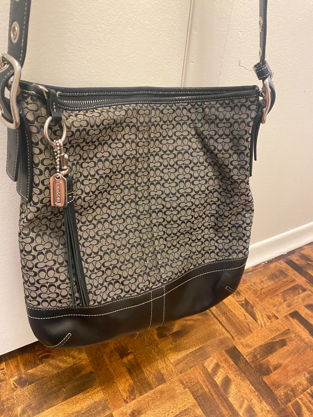 Selling a Coach crossbody bag in black signature canvas. It's in great shape and ready for a new home! The bag features a classic Coach design with the signature pattern and leather trim. Inside, there's plenty of room for your essentials. The model number is NF065-F10416 Pick up in Newmarket Cash only