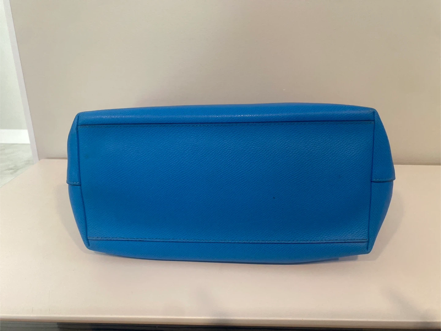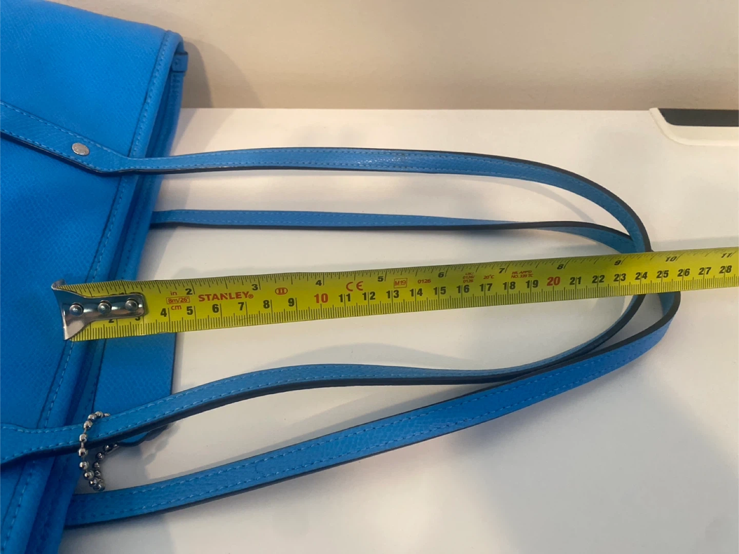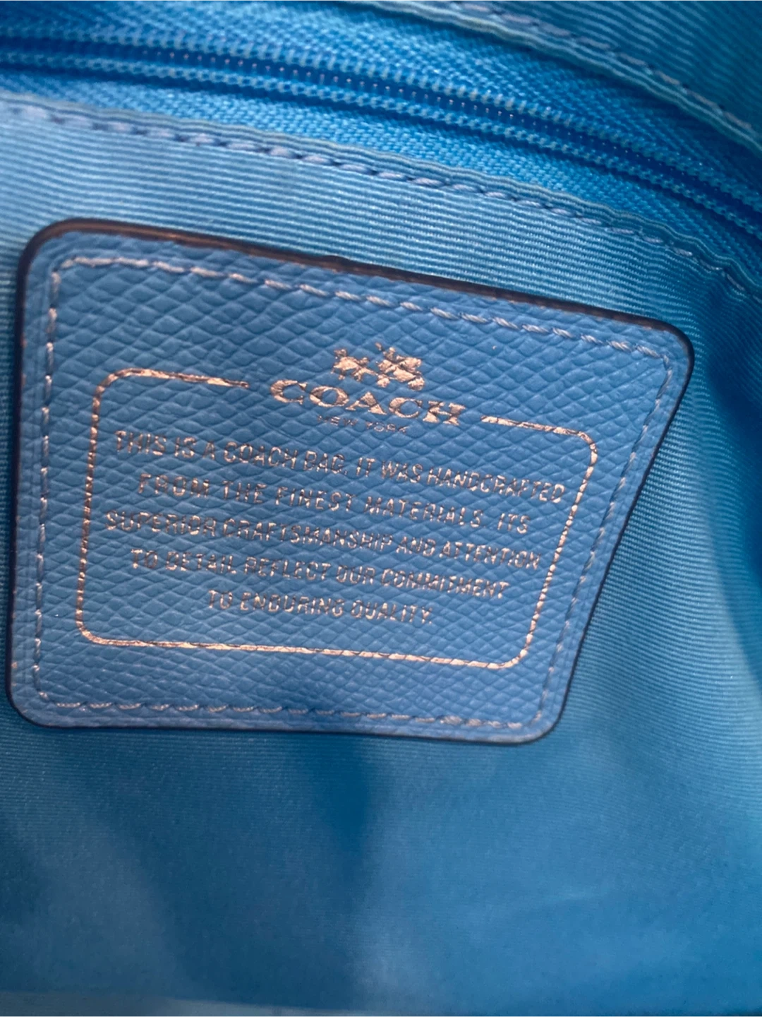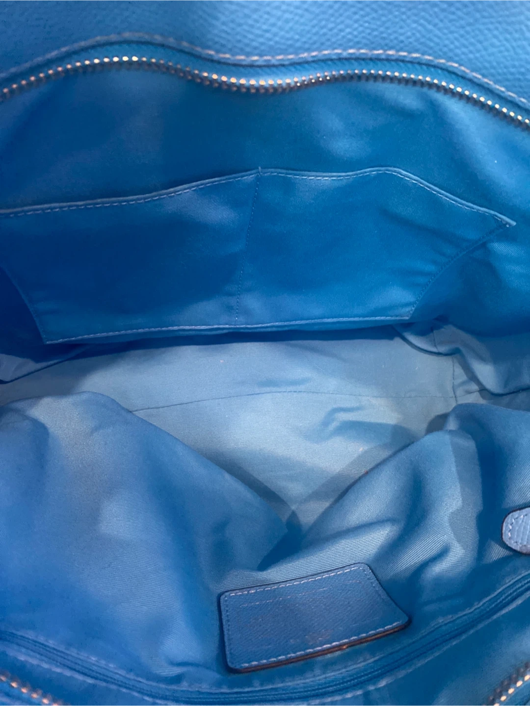 This is a Coach tote bag in a vibrant blue colour! It's made of leather and is in great condition. Perfect for carrying your everyday essentials! 30 cm X 27 cm X 14 cm Pick up in Rocky Ridge