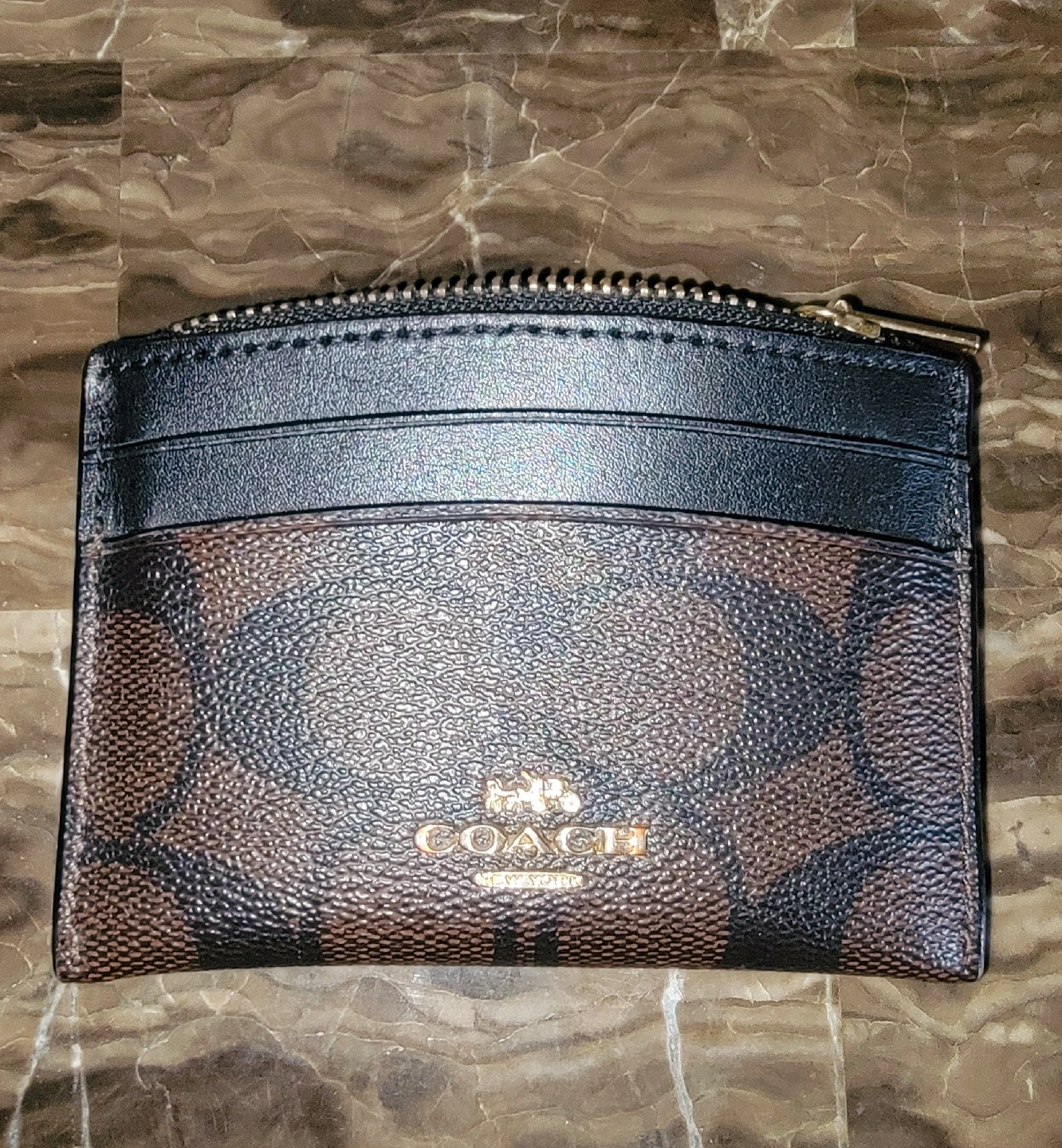 Selling a Coach card holder wallet in great condition! It features a classic Coach design with a zippered compartment and card slots. Perfect for keeping your essentials organized in style