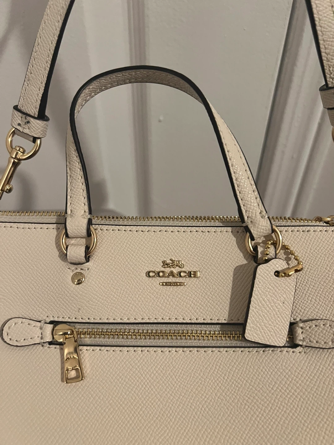 Selling a cute Coach Mini Gallery Crossbody in a lovely gold/chalk colour. Barely used, just like a new one. Length: 8 inch Height: 6 inch Width: 3 inch Pick-up Harvey's Bathurst & Steeles 800 Steeles Ave W Unit 4 Unit 4, Vaughan, ON L4J 7L2