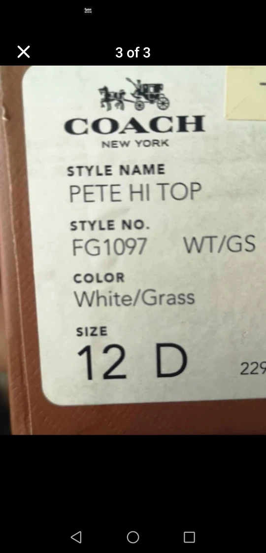 Selling a pair of Coach Pete Hi Top shoes in a stylish white and grass colour combination! These are size 12D and come with the original box