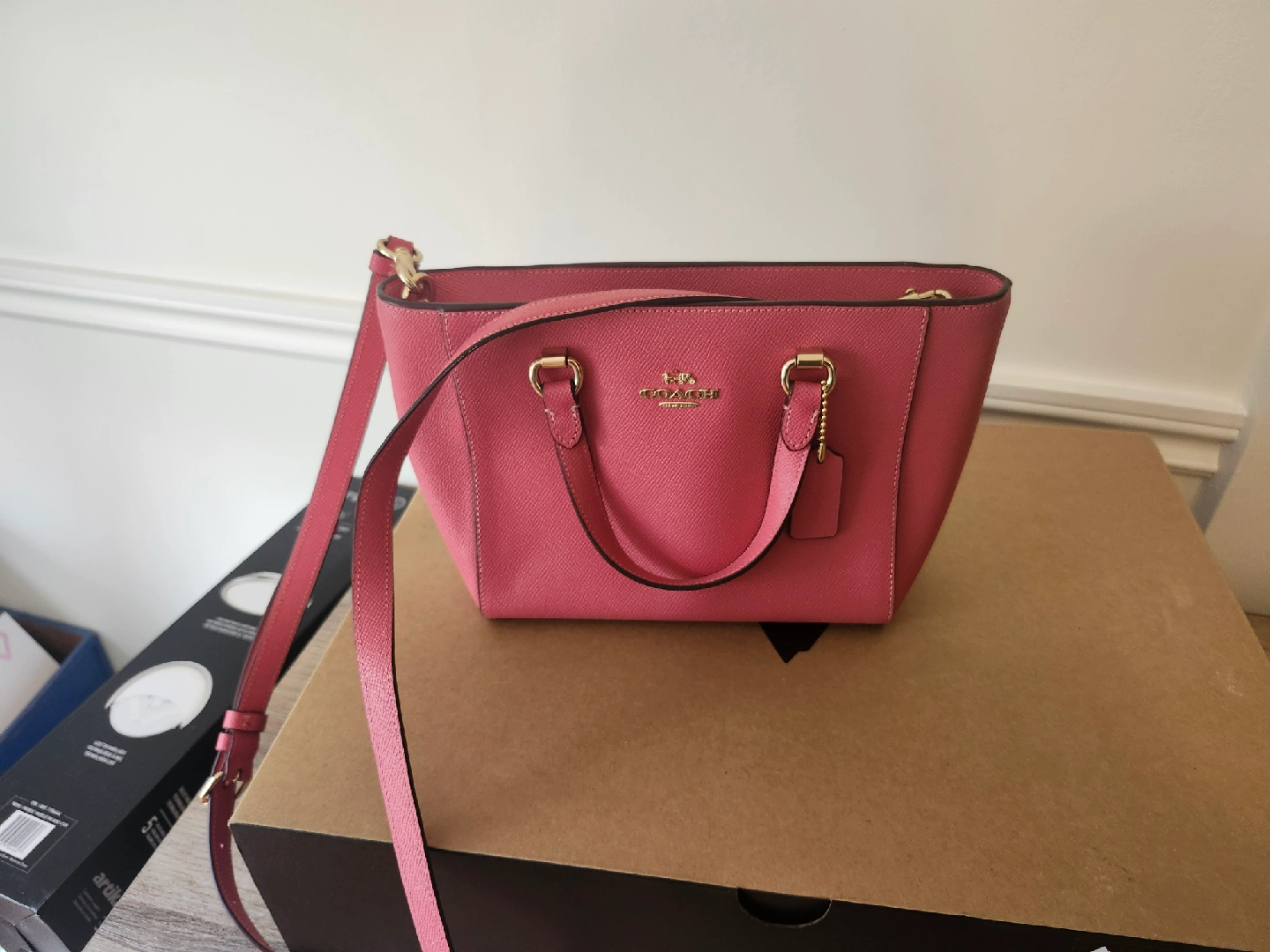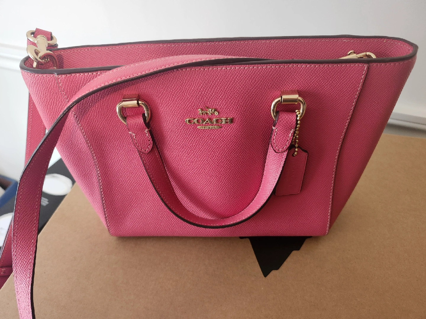 Selling a cute Coach crossbody bag in a lovely shade of pink! It's in great condition and perfect for everyday use. The bag is made of leather and is a great size for carrying your essentials