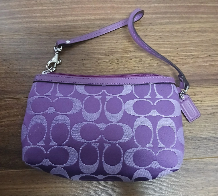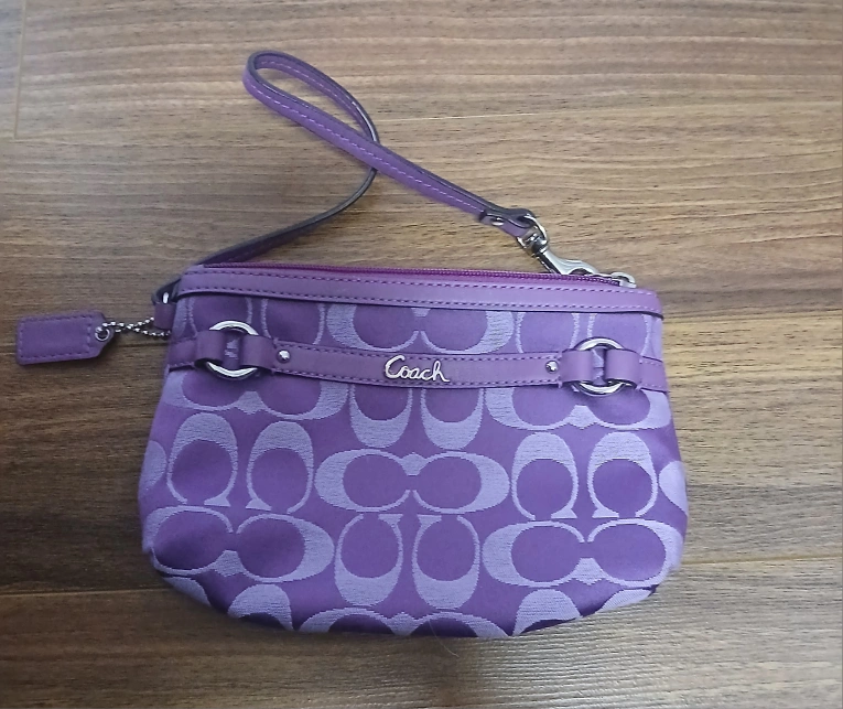 π Authentic Coach Purple Signature Wristlet β Excellent Condition π Add a pop of color to your outfit with this gorgeous Coach wristlet in rich purple! Authentic Coach with classic signature βCβ pattern Silver-tone hardware and Coach logo Detachable wrist strap Zipper closure Clean interior, no stains or damage! Perfect for carrying your essentials β phone, cards, keys, and lipstick β whether youβre running errands or heading out for the night.