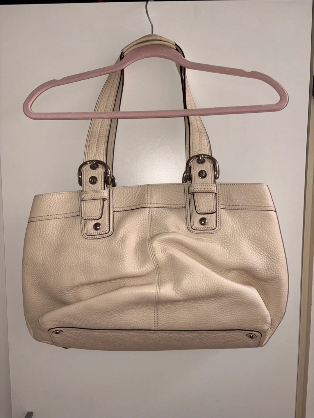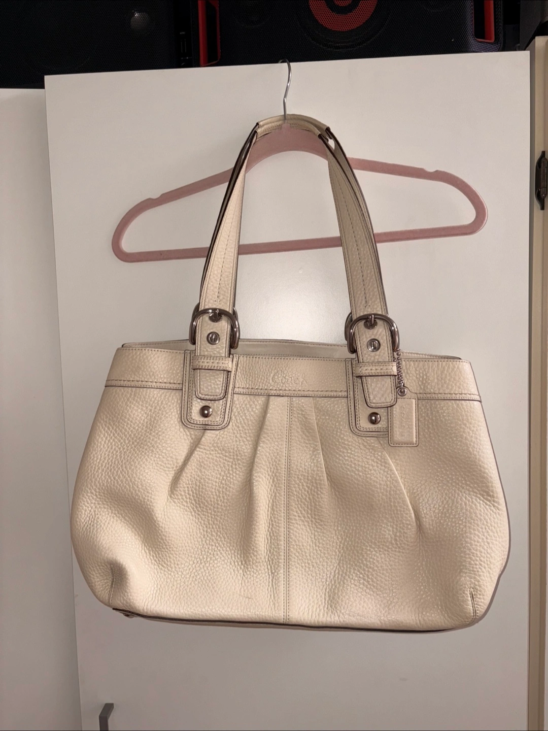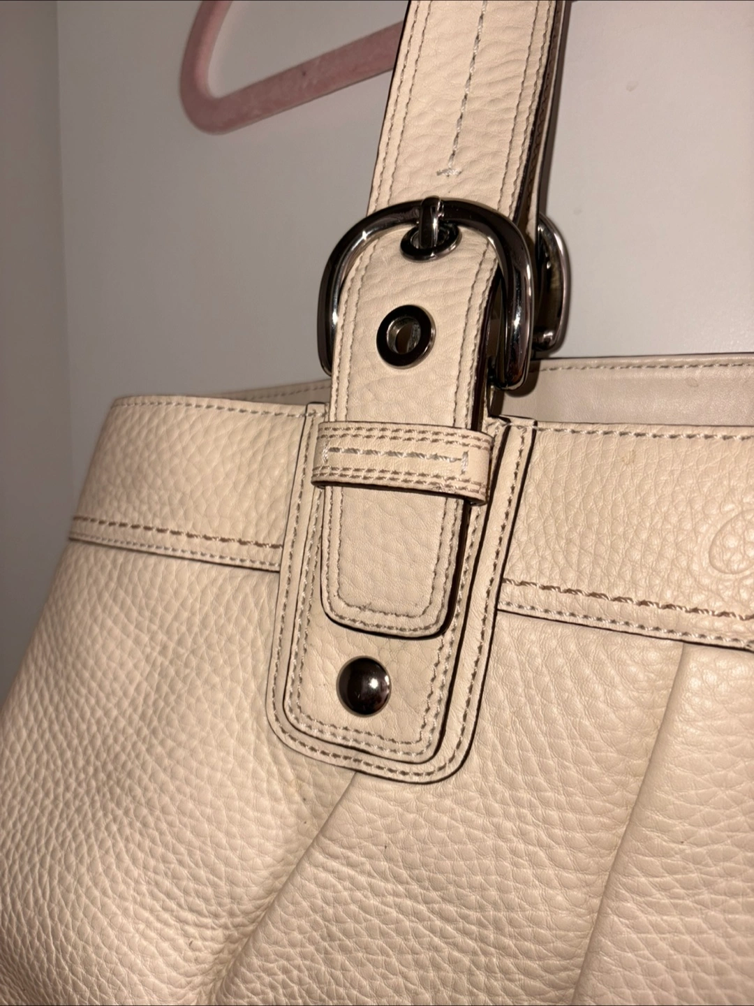 This is the Vintage Coach Soho XL Leather Shoulder Bag, Cream/Bone Pleated with Silver Hardware 🪽🫧 Model Number: F13733 Original Price: $400.00 —> MY PRICE: $105.00 Negotiations are welcome! Perfect Condition! Cleaned! Polished! Spacious!