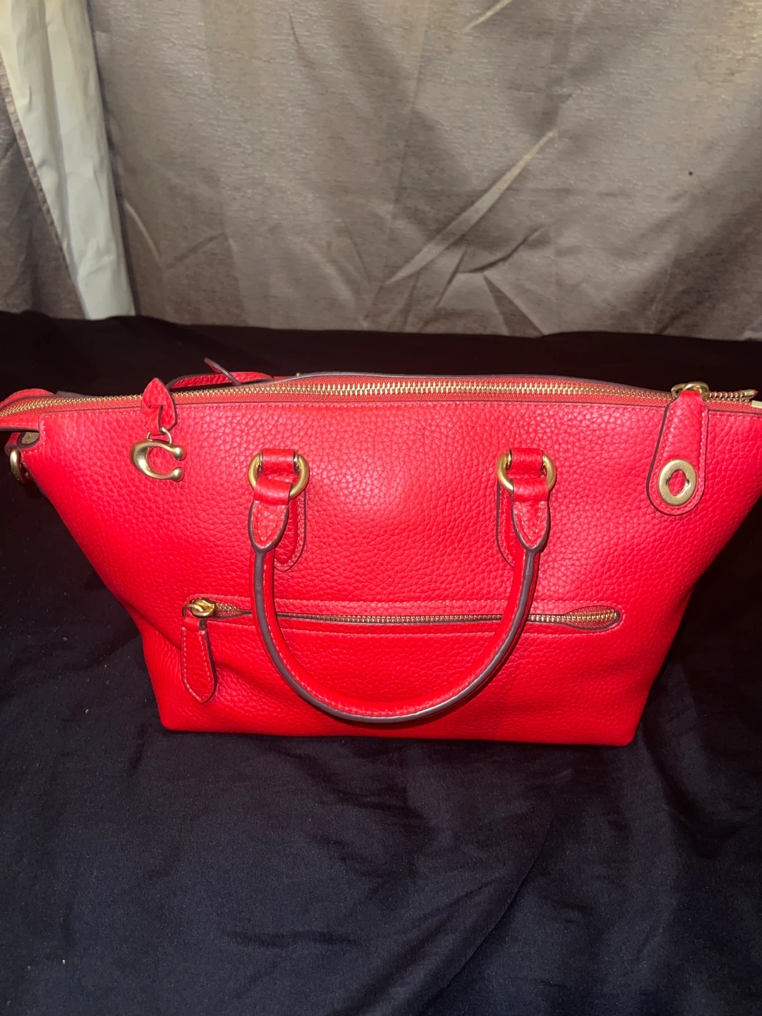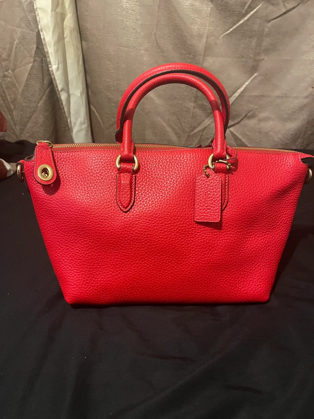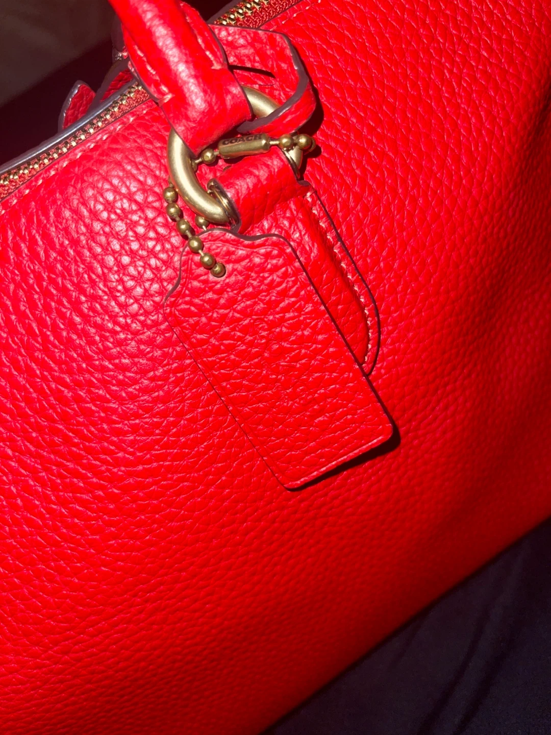 Selling a Brand New vibrant red Coach satchel! It's in great condition and features a classic design. Perfect for adding a pop of colour to any outfit. The leather is textured and the hardware is gold-toned. A stylish and practical bag! 10/10 Condition Message for more details