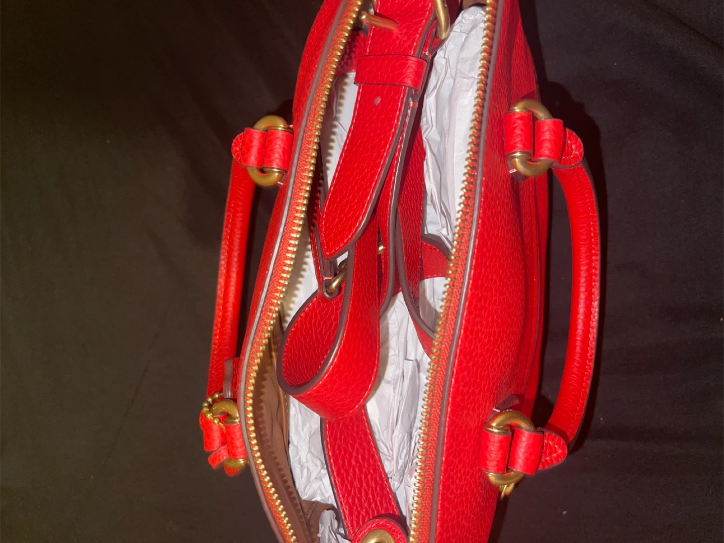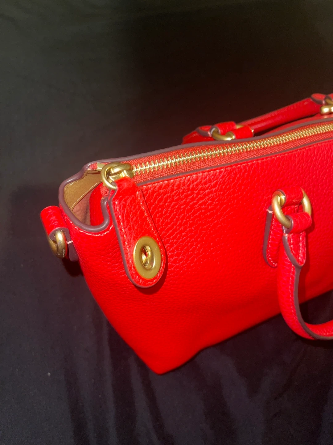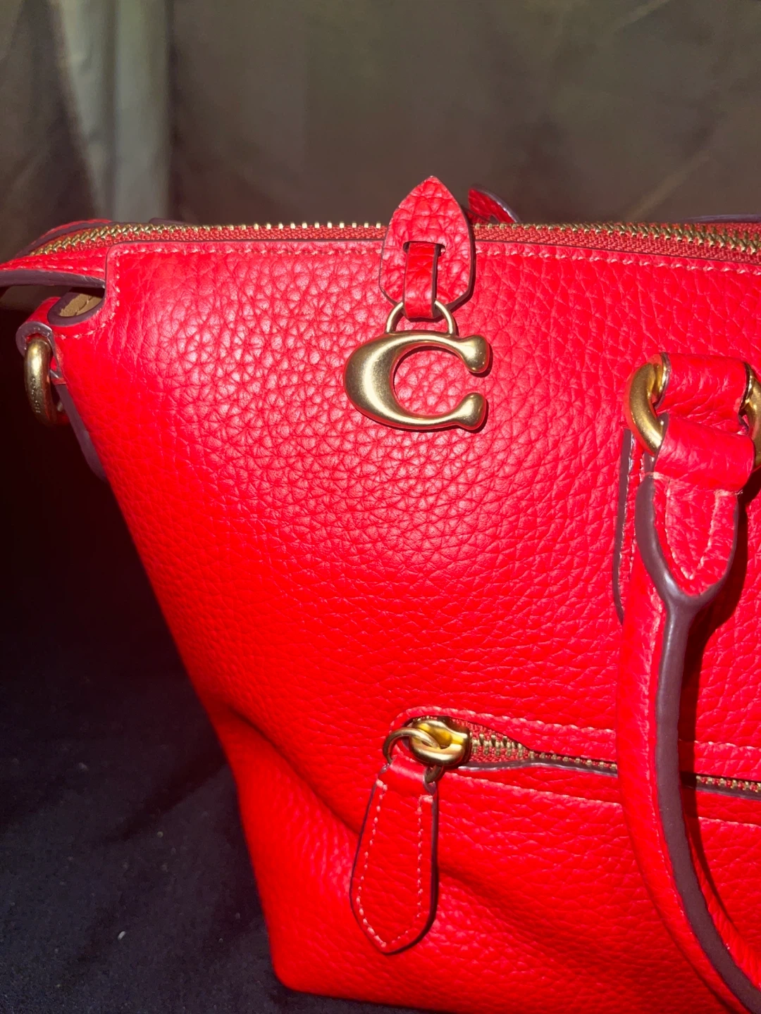 Selling a Brand New vibrant red Coach satchel! It's in great condition and features a classic design. Perfect for adding a pop of colour to any outfit. The leather is textured and the hardware is gold-toned. A stylish and practical bag! 10/10 Condition Message for more details
