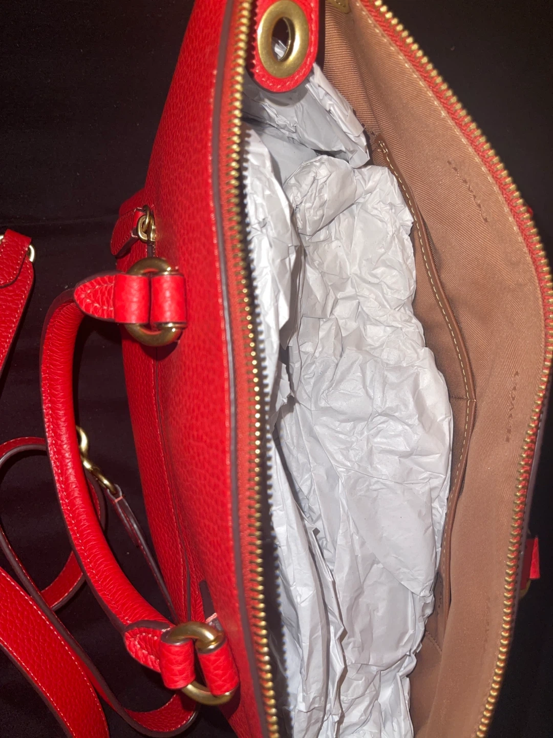 Selling a Brand New vibrant red Coach satchel! It's in great condition and features a classic design. Perfect for adding a pop of colour to any outfit. The leather is textured and the hardware is gold-toned. A stylish and practical bag! 10/10 Condition Message for more details