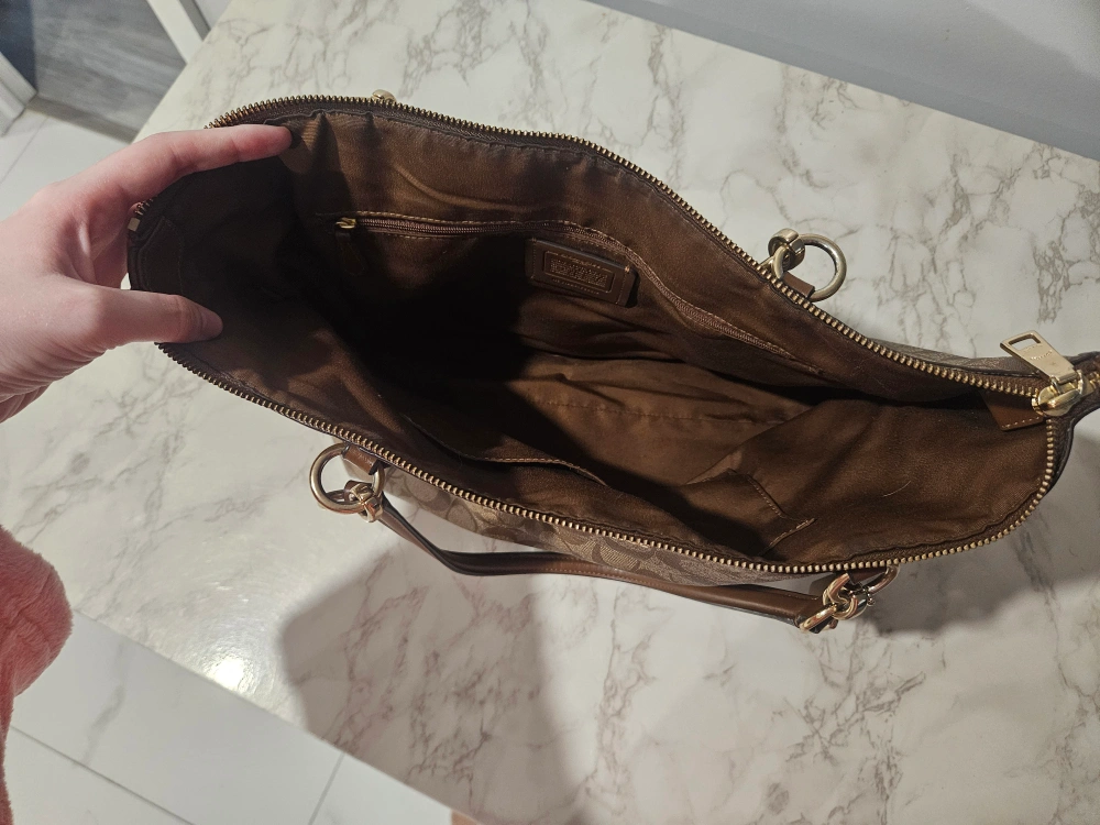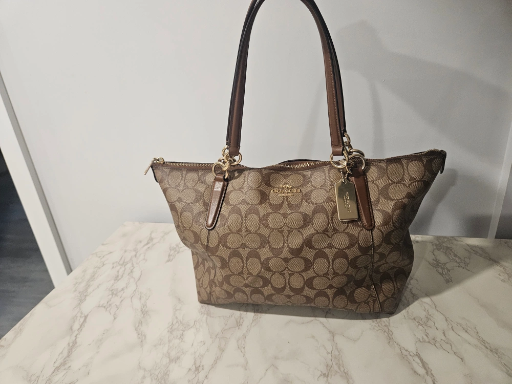 Selling a Coach signature tote bag in brown. It's in excellent condition and has a classic look! The interior is spacious and perfect for everyday use. It's a stylish and practical bag!