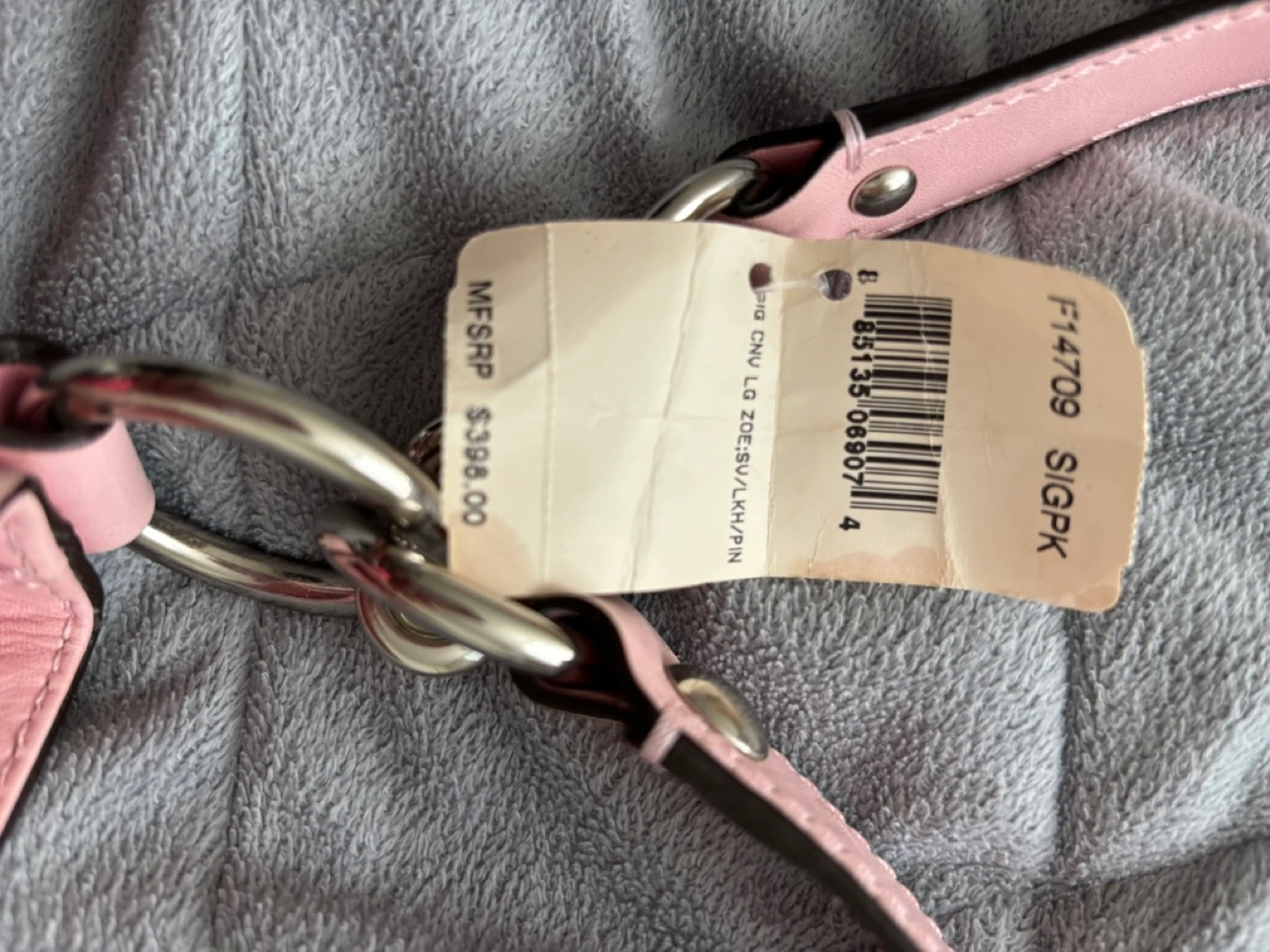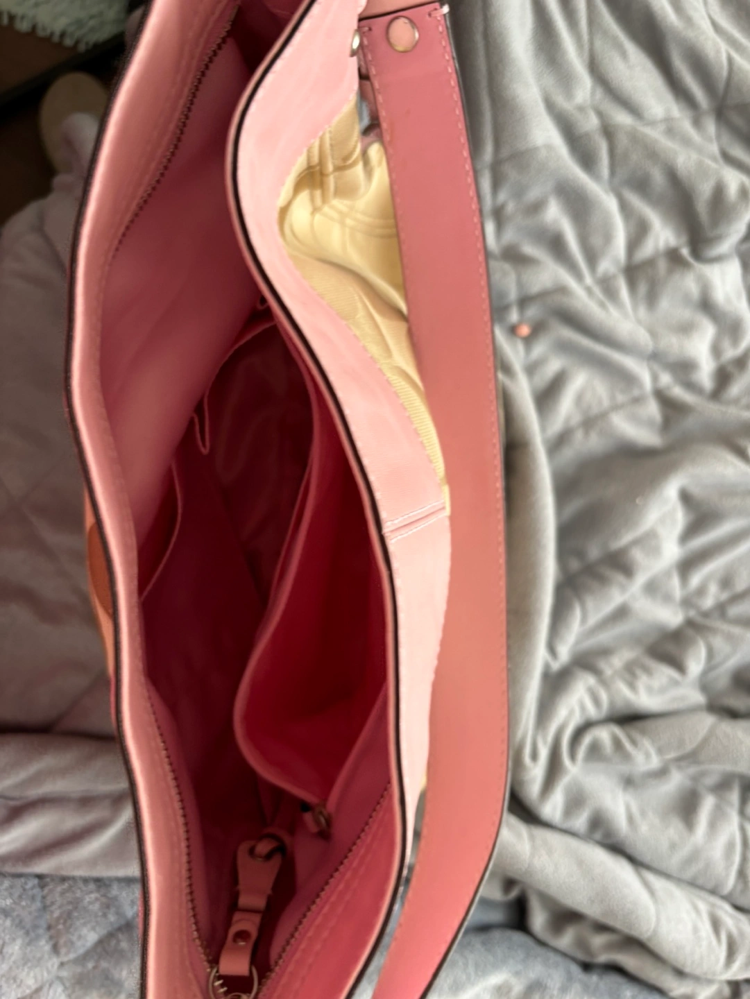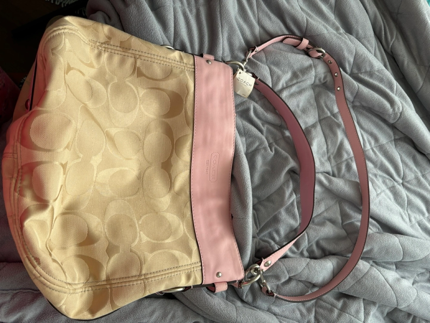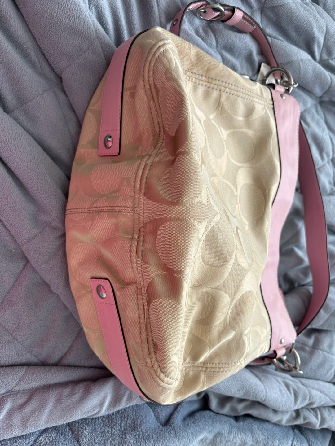 New original Coach handbag. Beige signature C canvas with pink leather trim. Shoulder bag. Multiple interior pockets. Excellent condition.