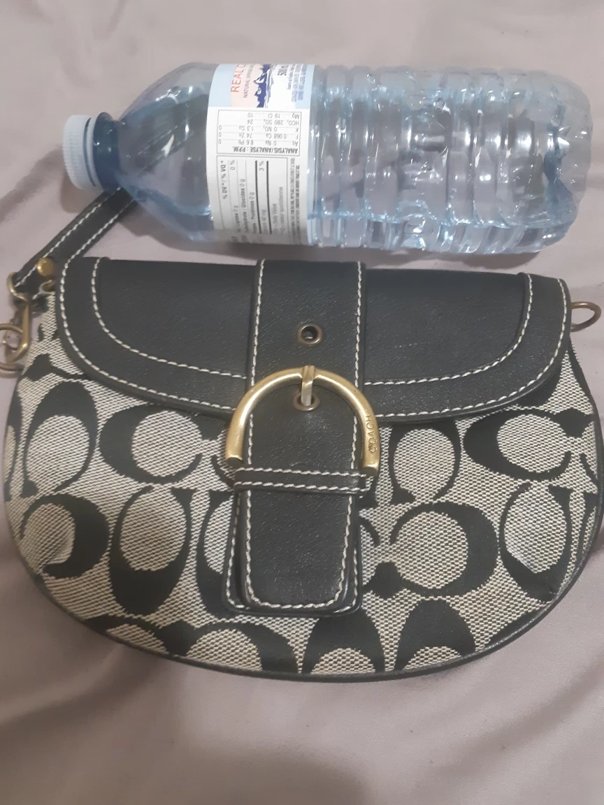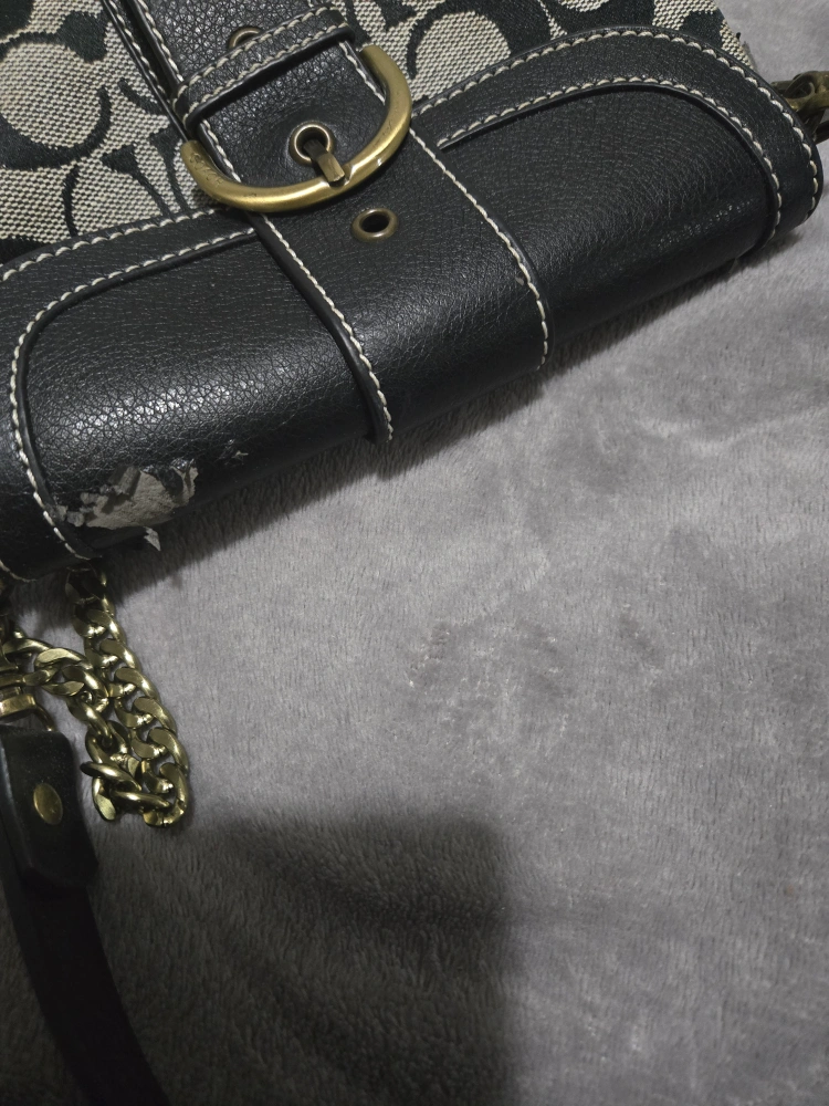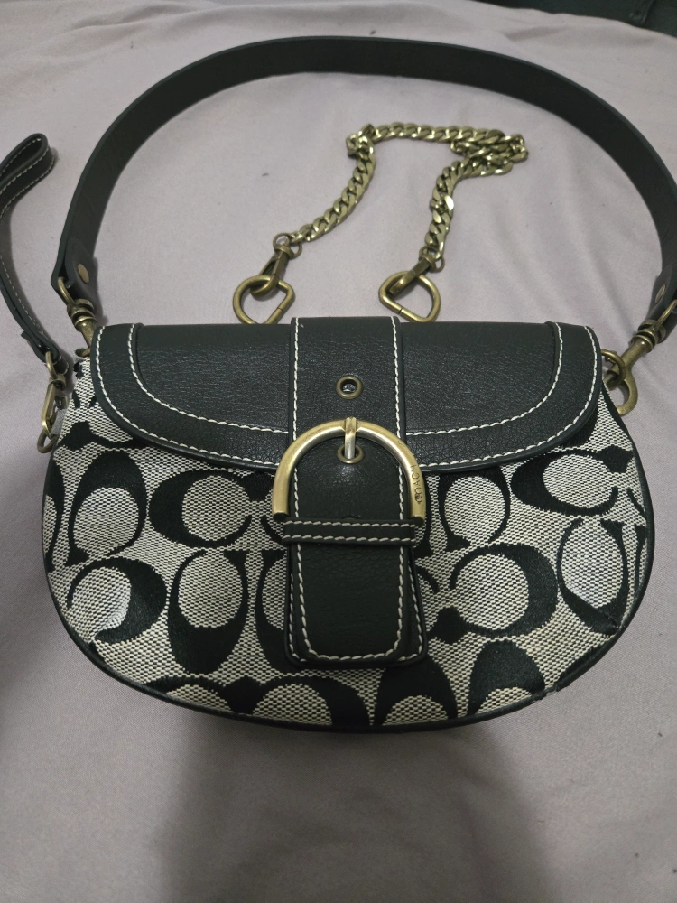 Well loved Coach Purse in good condition . Detachable leather shoulder strap with bonus chain strap or just use as a wristlet. Lots of options. Little inferiors with the leather shown in pictures still has lots of life. Can be used as a shoulder purse /clutch purse /wristlet. Perfect for a night out. Ready for a new home. Open to reasonable offers.