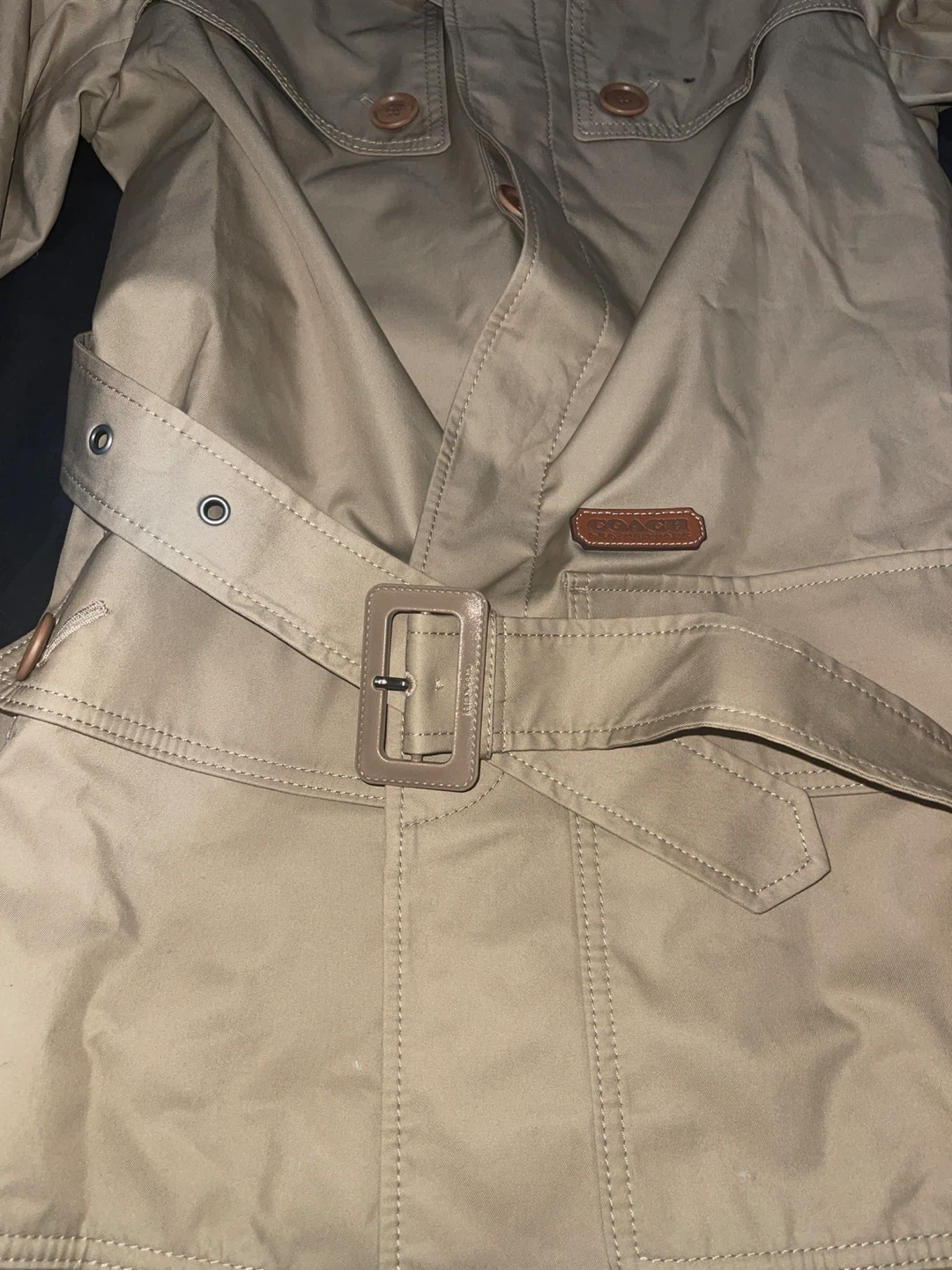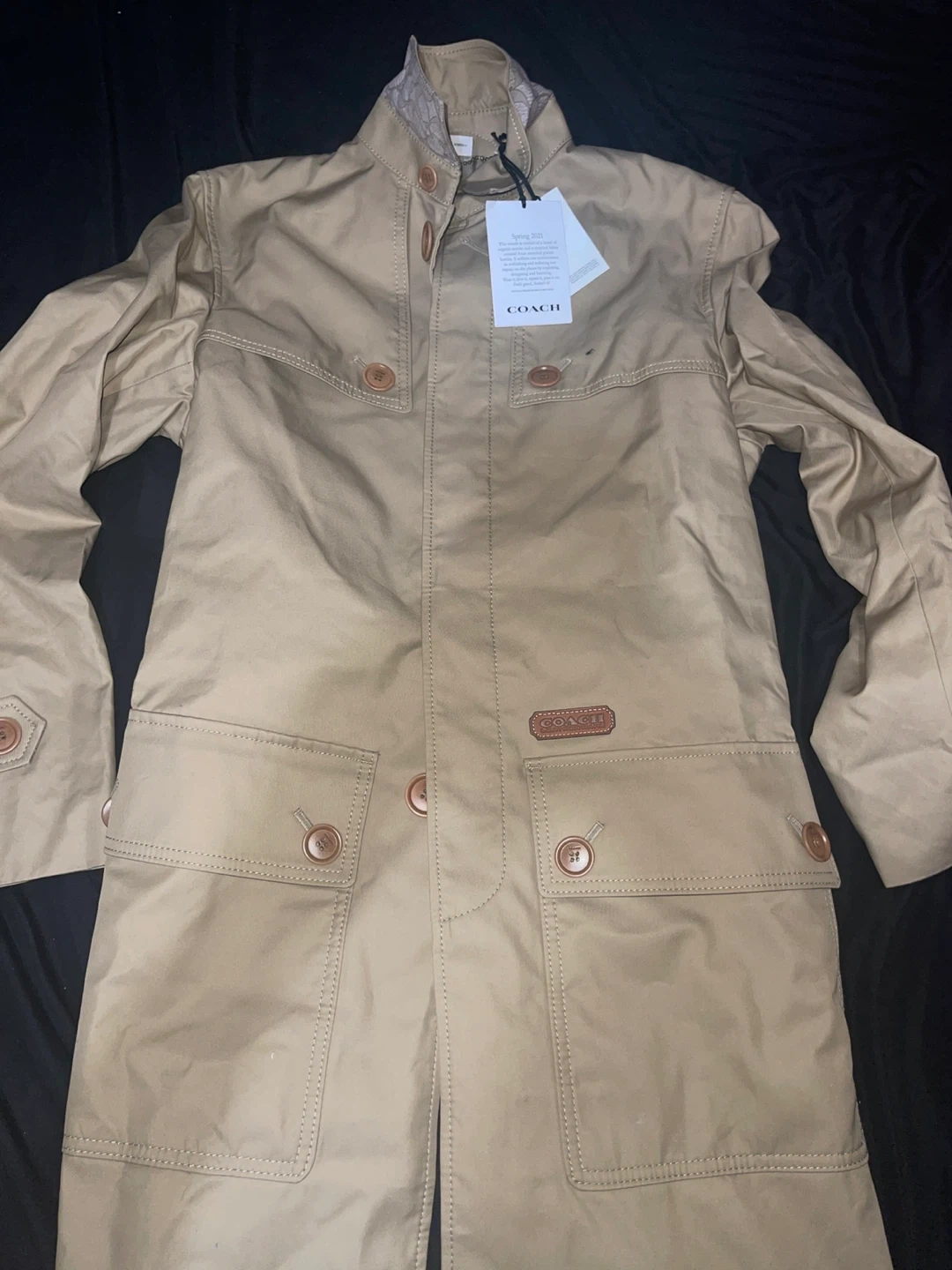 Selling a Brand New coach Spring 2021 trench coat in a size small. This trench is crafted of a blend of organic cotton and a recycled fabric created from recycled plastic bottles. It reflects our commitment to rethinking and reducing our impact on the planet by exploring, designing, and learning ways to love it. Wear it, love it, pass it on. 10/10 Condition Message for more details
