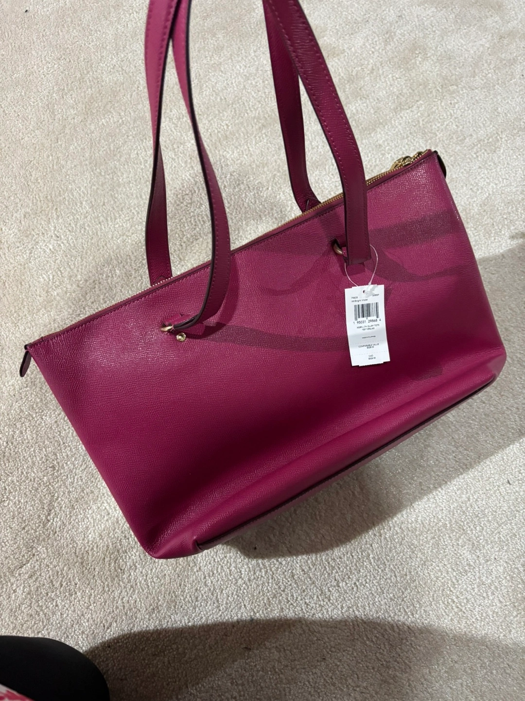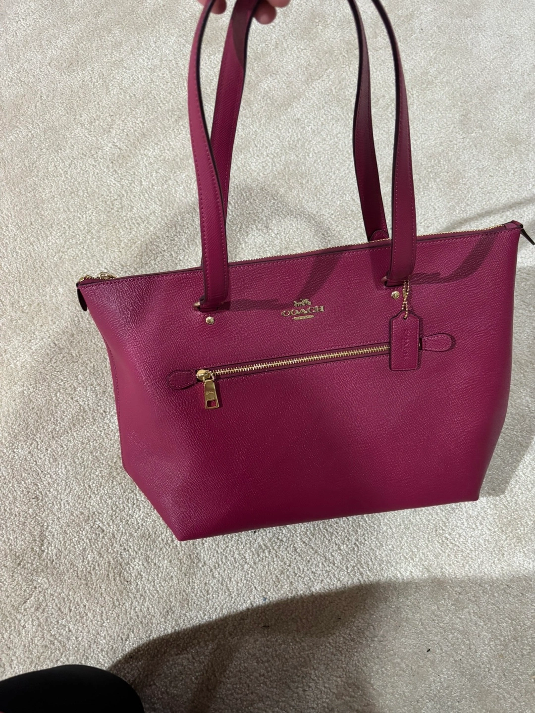 Brand new with tags,Beautiful deep pink Coach tote bag. Top zip closure. Two top handles. Gold hardware. Excellent condition. Perfect for everyday use.