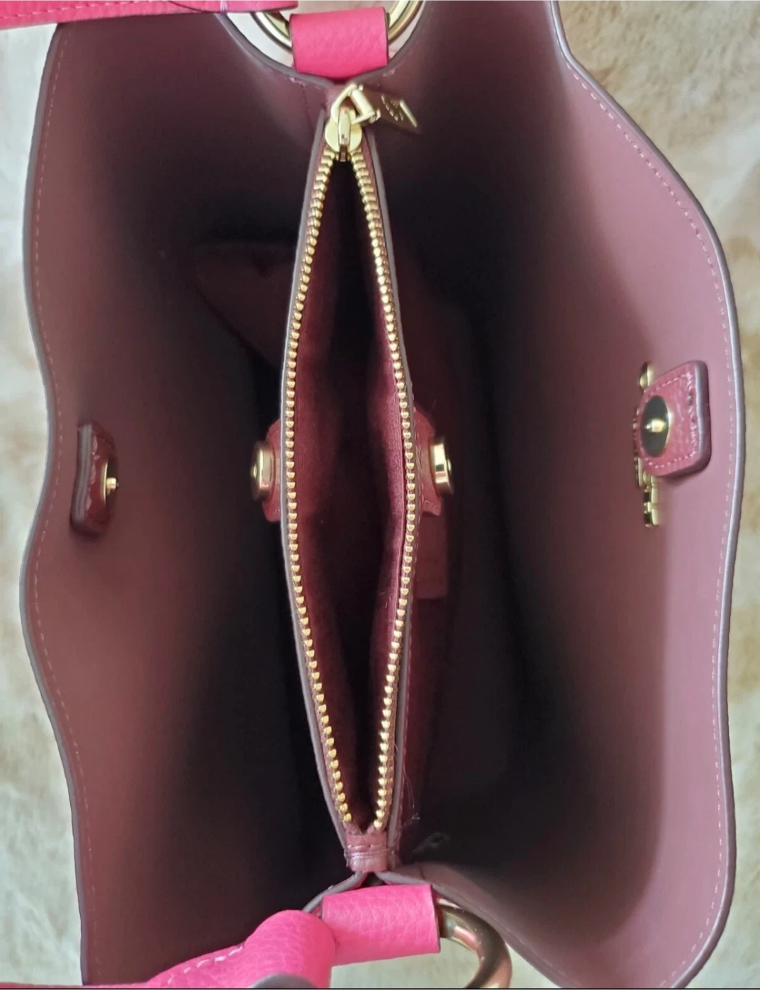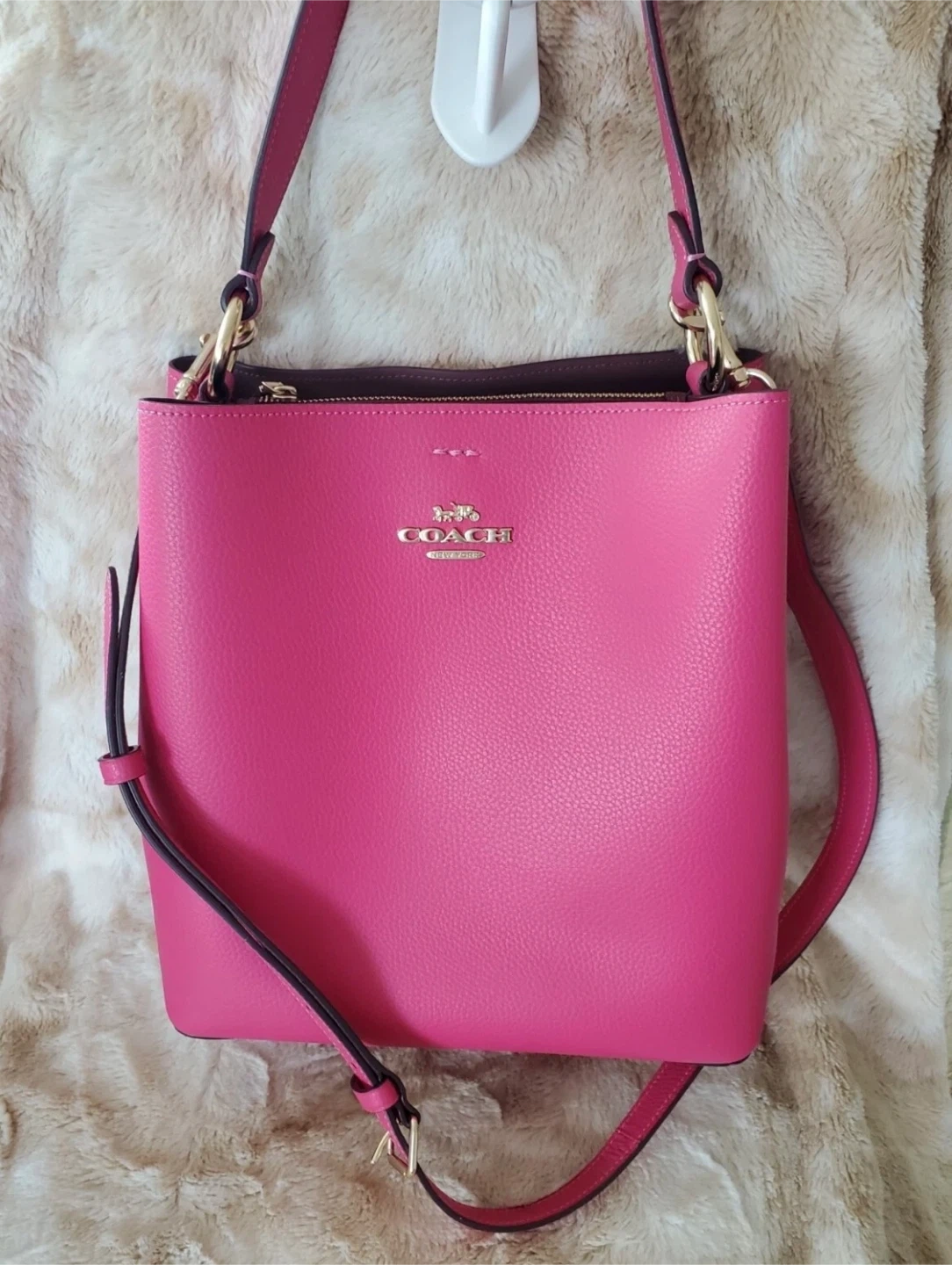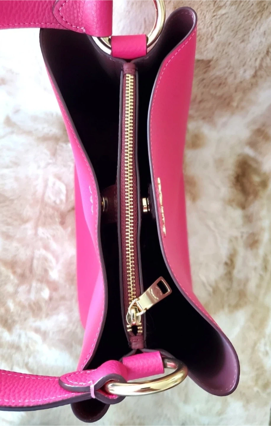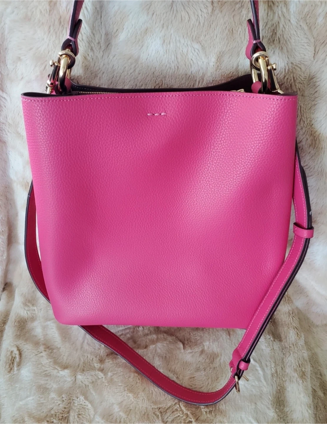 Selling a cute Coach bucket bag in a vibrant pink colour! It's made of leather inside and out. Perfect for adding a pop of colour to your outfit!