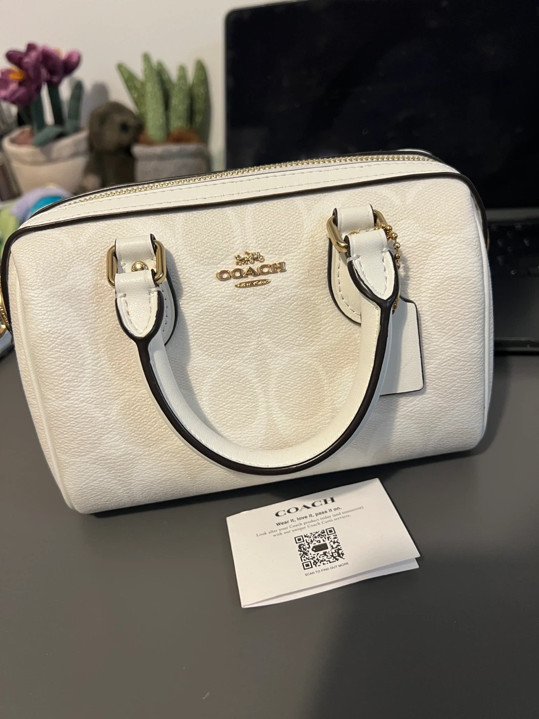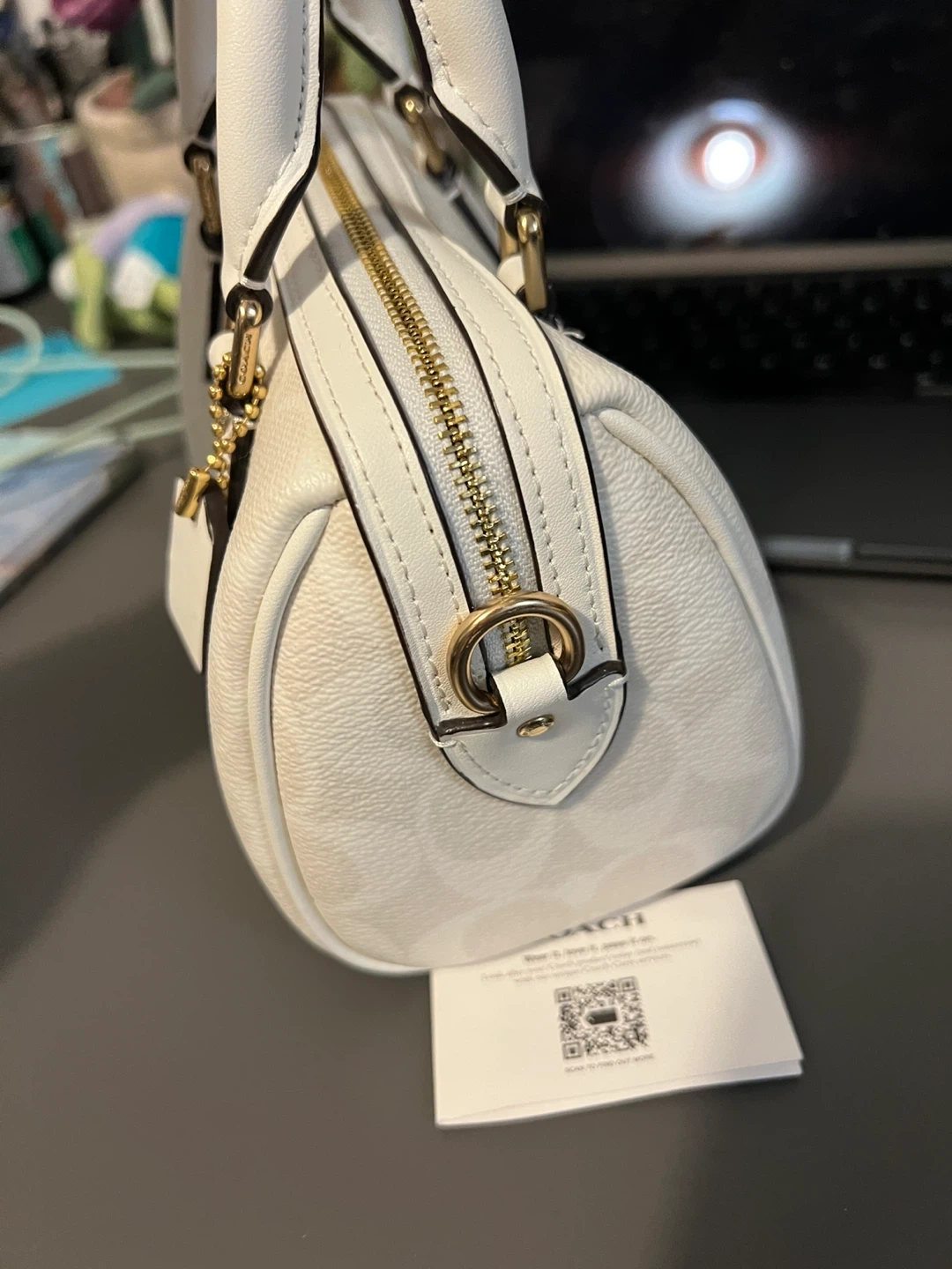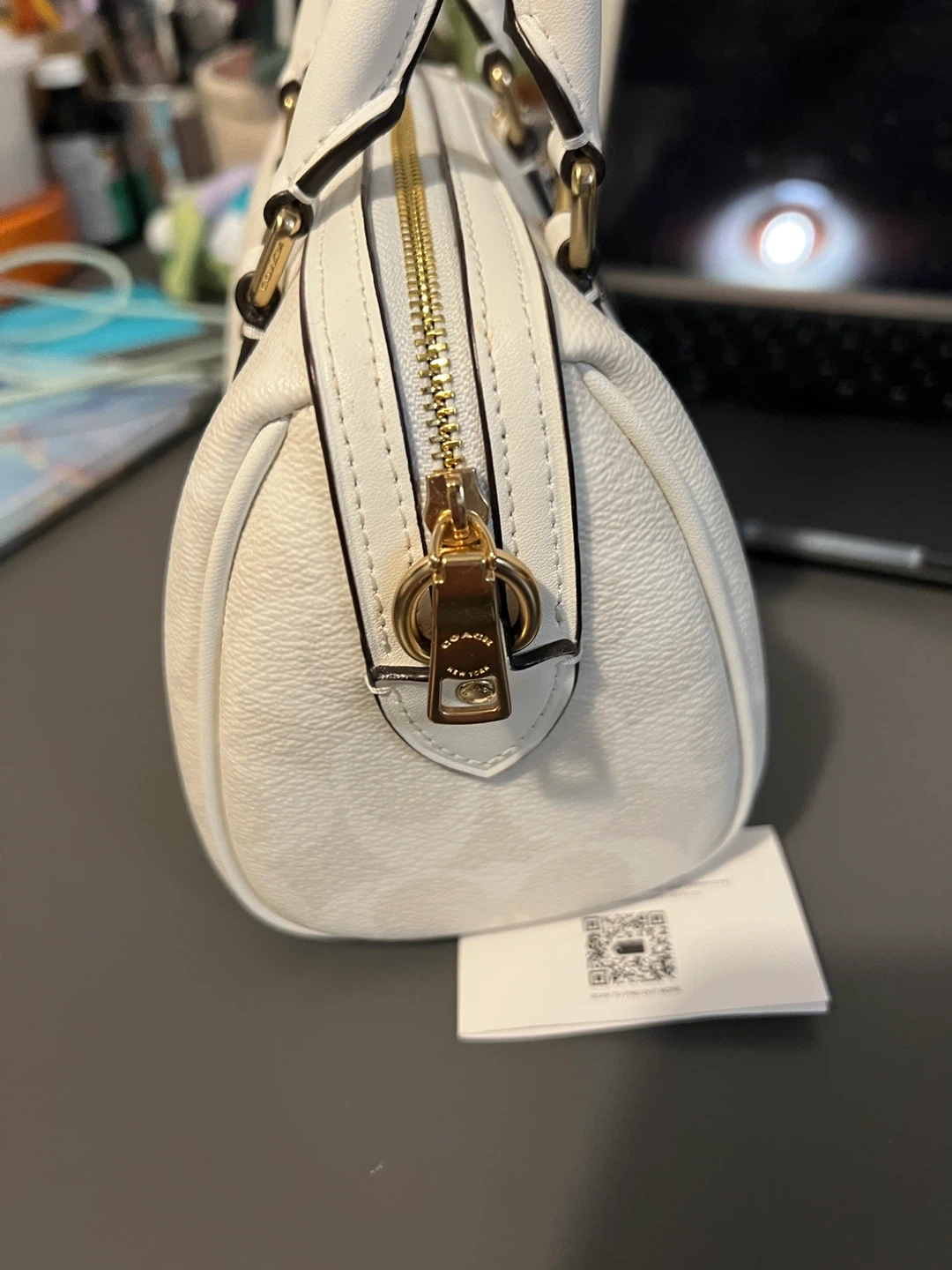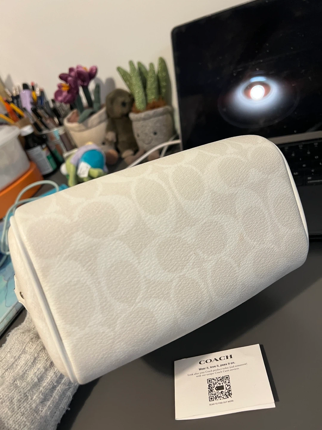 Selling a Coach handbag in excellent condition! It's a beautiful white colour and made of leather. Perfect for everyday use or a special occasion. The bag has a gold zipper. It’s in great shape and ready for a new home
