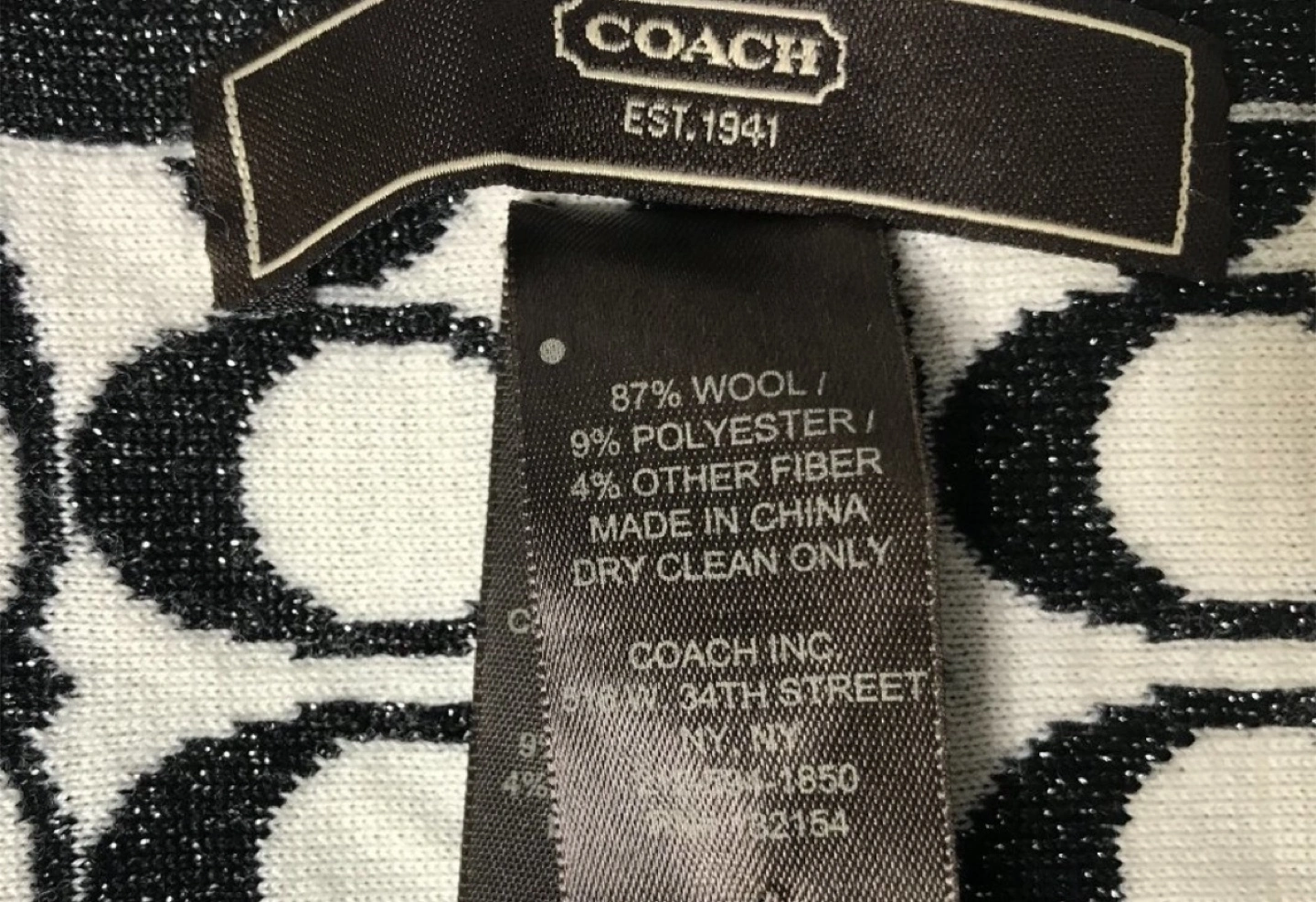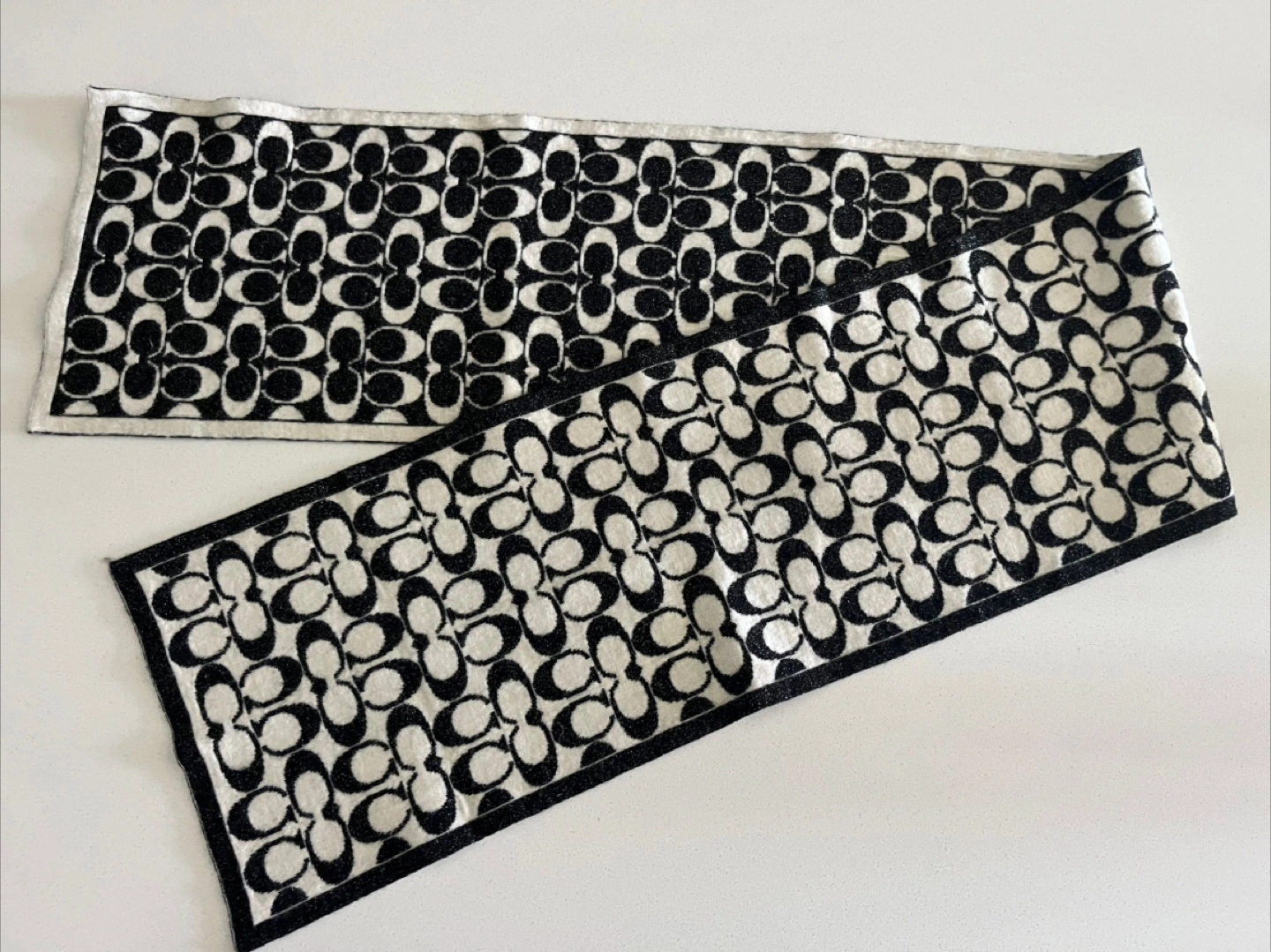 Coach scarf is made from a wool blend. Size: 53” x 8 1/4 “