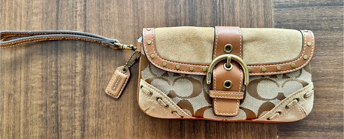 Selling a Coach wristlet in excellent condition! It features brown suede and the classic Coach pattern. Perfect for carrying your essentials in style