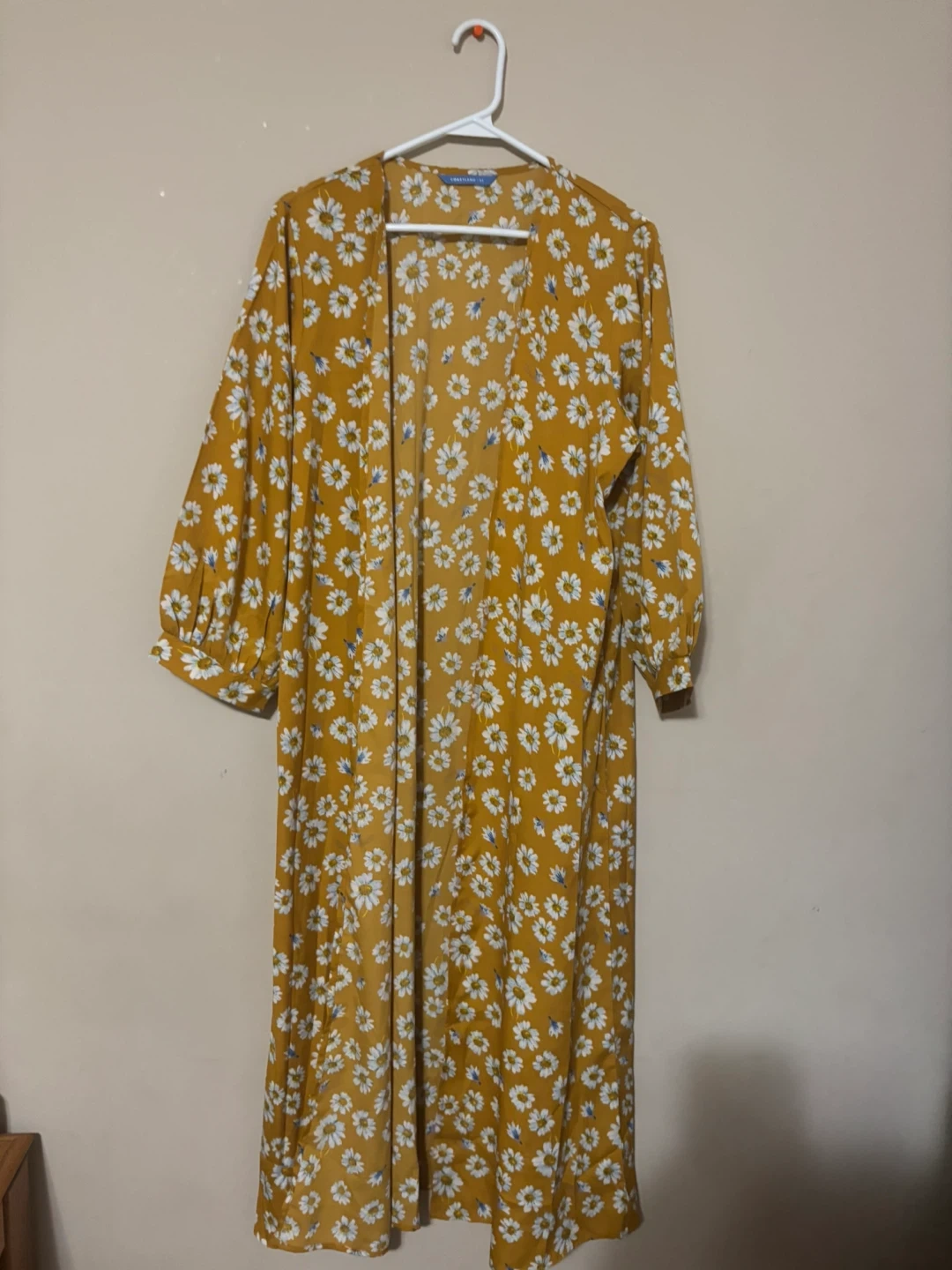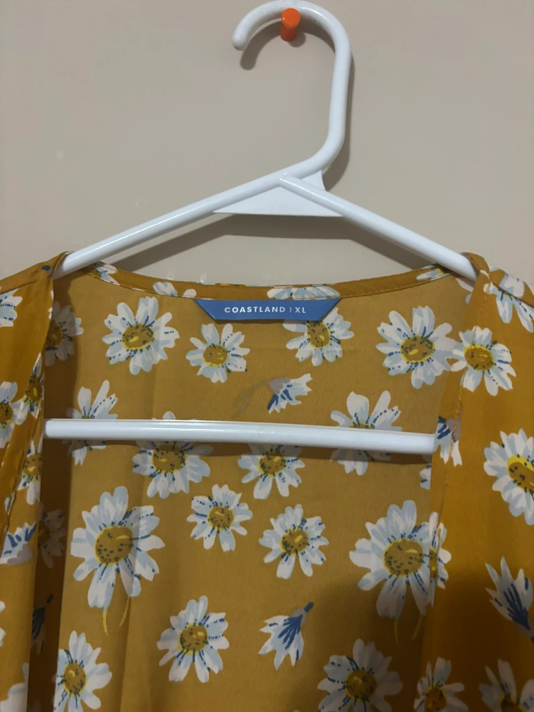 Here's a lovely Coastland kimono featuring a cheerful daisy print! It's a size XL and would be a great addition to your wardrobe for layering or as a lightweight cover-up