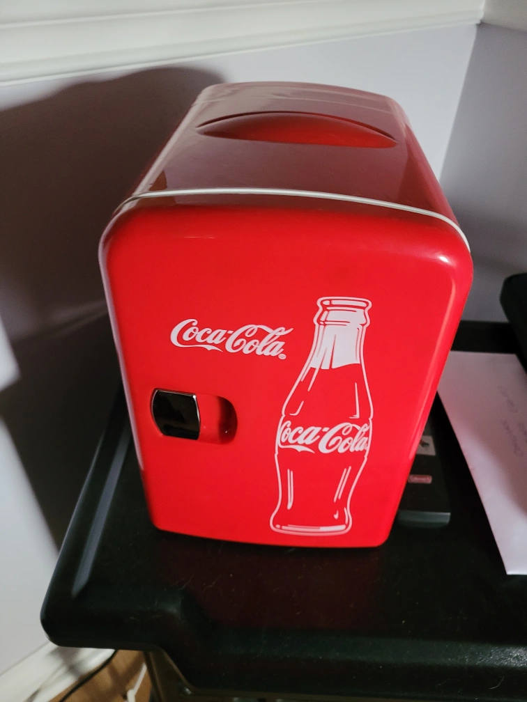 Keep your drinks cool with this fun Coca-Cola mini fridge! It's perfect for a dorm room, office, or even a bedroom. It's in great condition and ready to keep your favourite beverages chilled