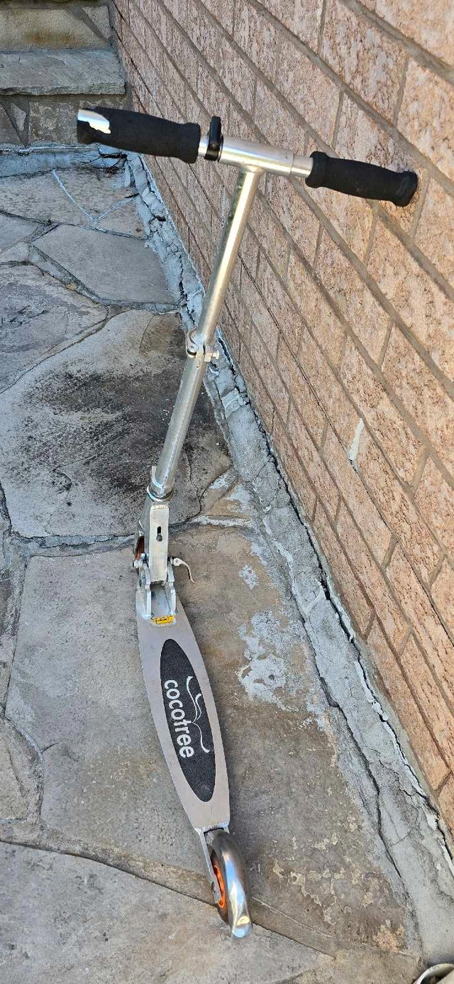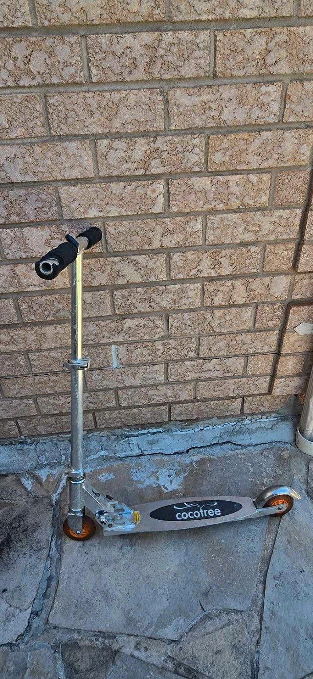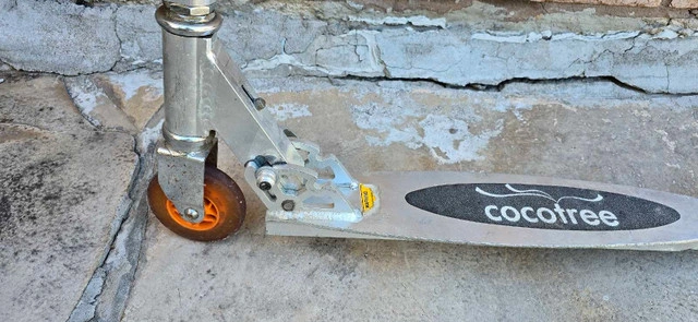 Selling a used Cocotree scooter. It has some wear and tear, as you can see in the pictures, but it's still perfectly functional and ready for some fun rides! Great for kids or anyone looking for a simple scooter.