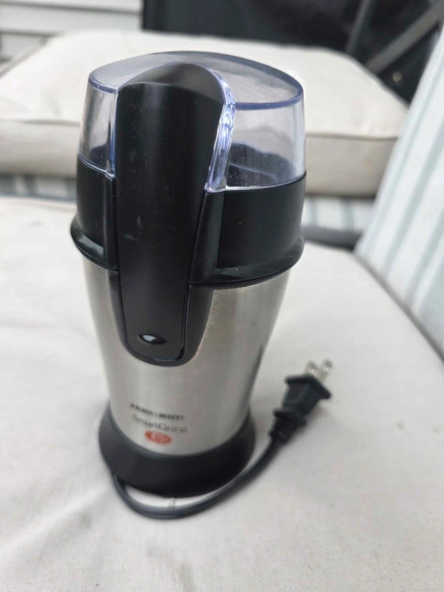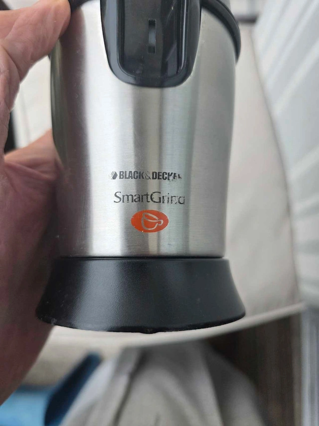 I'm selling a Black and Decker SmartGrind coffee grinder. This compact grinder is perfect for quickly grinding coffee beans, spices, or nuts. This grinder is in good condition and ready to use for your daily coffee rituals. Here are some details: * Brand: Black & Decker * Model: SmartGrind * Type: Electric Blade Grinder * Colour: Silver and Black Please note, if the ad is still up, the grinder is still available!