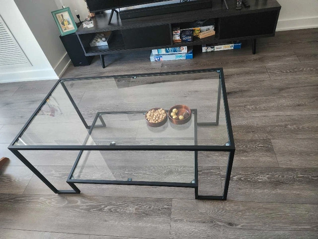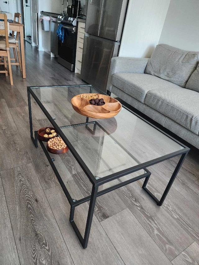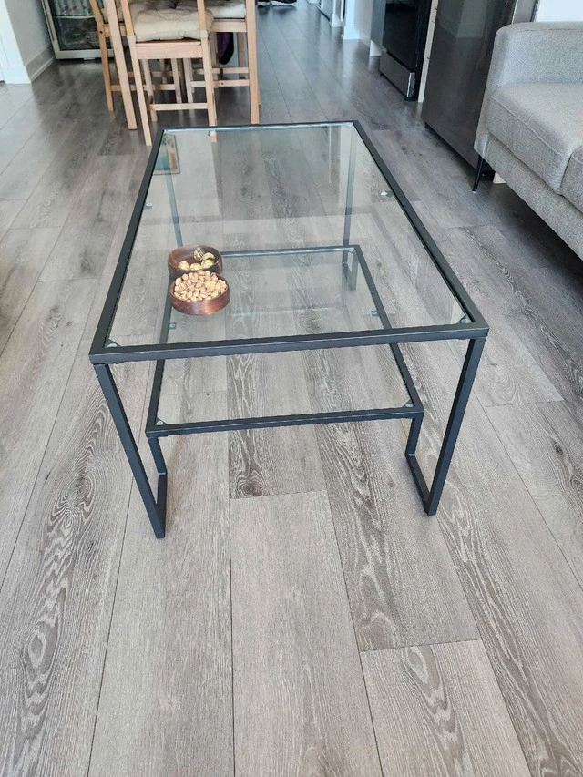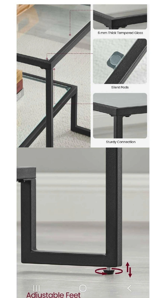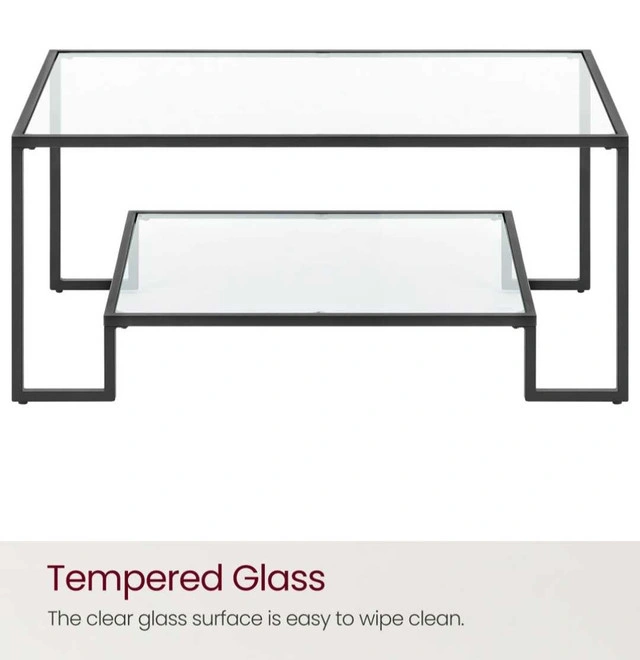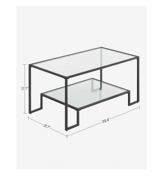In a smoke free, pet free house, no scratches at all. This clean-lined coffee table makes a statement in your living space thanks to its geometric base and mixed-material look. It is crafted from powder-coated steel. We love how weightless, airy look of this table gives it a barely-there design. The top is roomy enough for a tray of apps and drinks and the lower shelf is ideal for a stack of handsome coffee table books or decor. This accent table also comes with floor levelers in the event your floor is not leveled. Feature • What You Get: A 2-tier coffee table that plays with glass and stable steel, ready to brighten up your living room and impress your guests. the sturdy steel frame and easy-to-clean. Reliable Support Is Also Ensured: Thanks to 0.24 inch thick tempered glass, this glass coffee table is strong enough to provide reliable support for your everyday essentials. Luxurious Look in Your Living Room...After the addition of this coffee table.