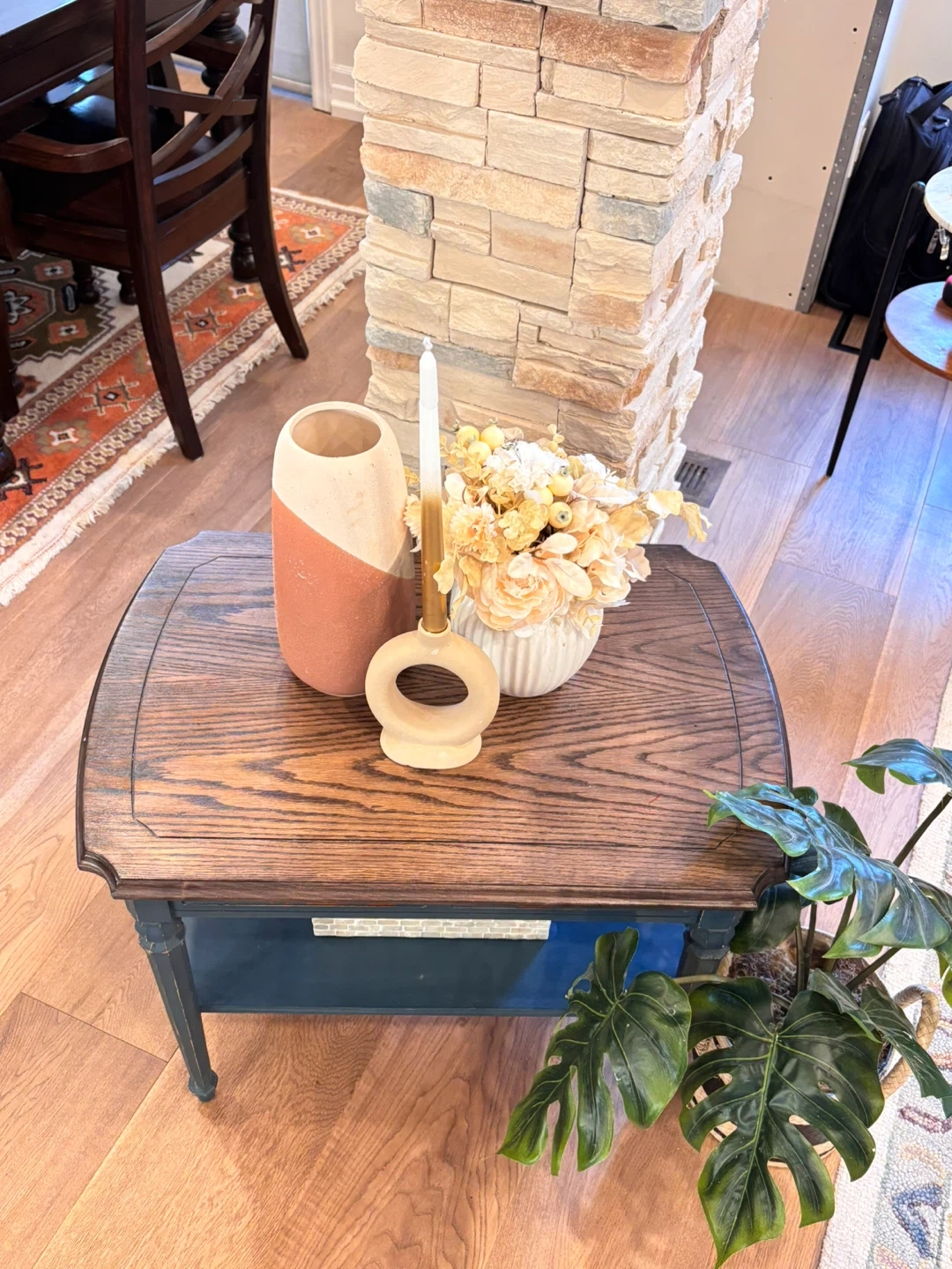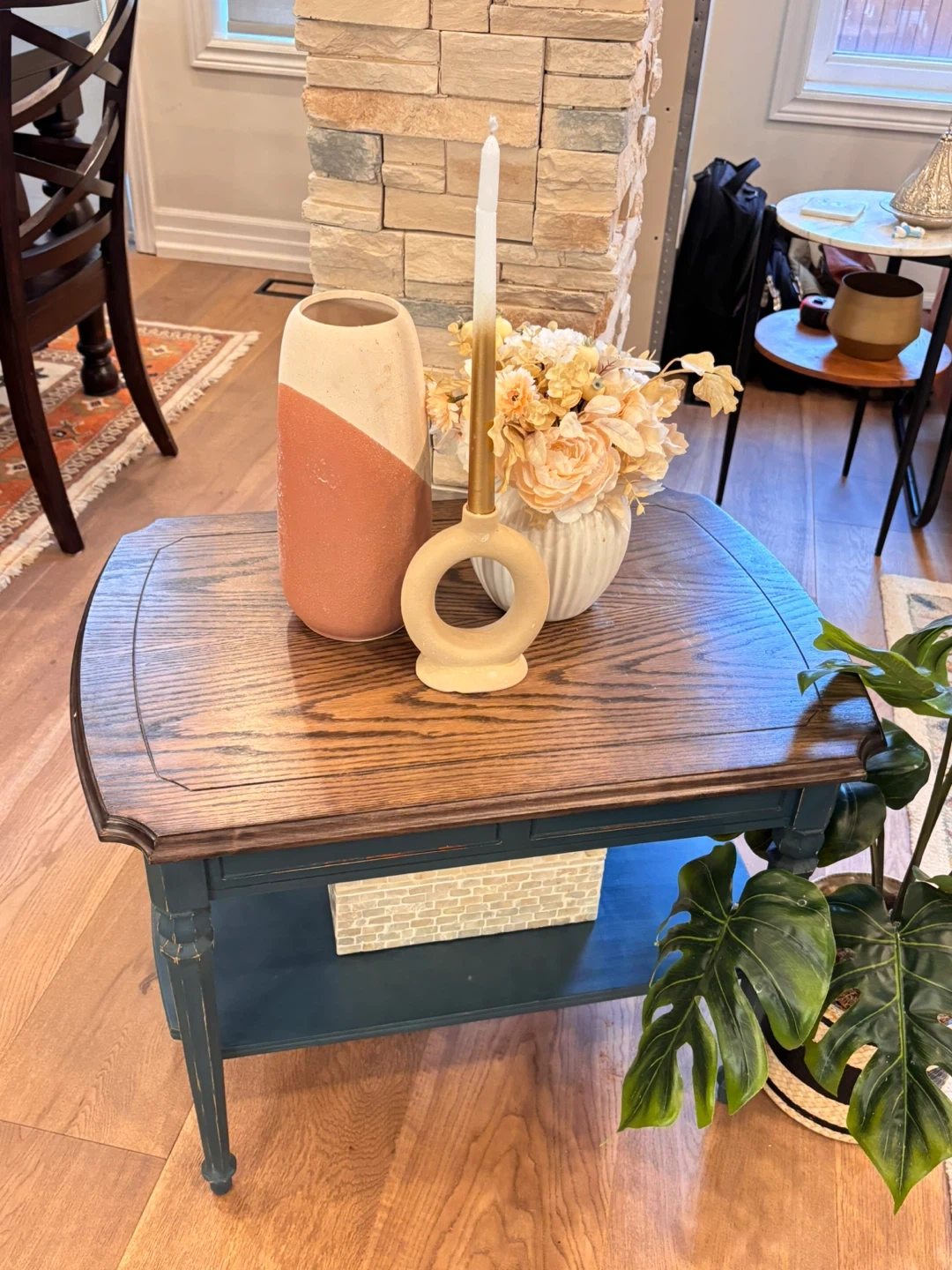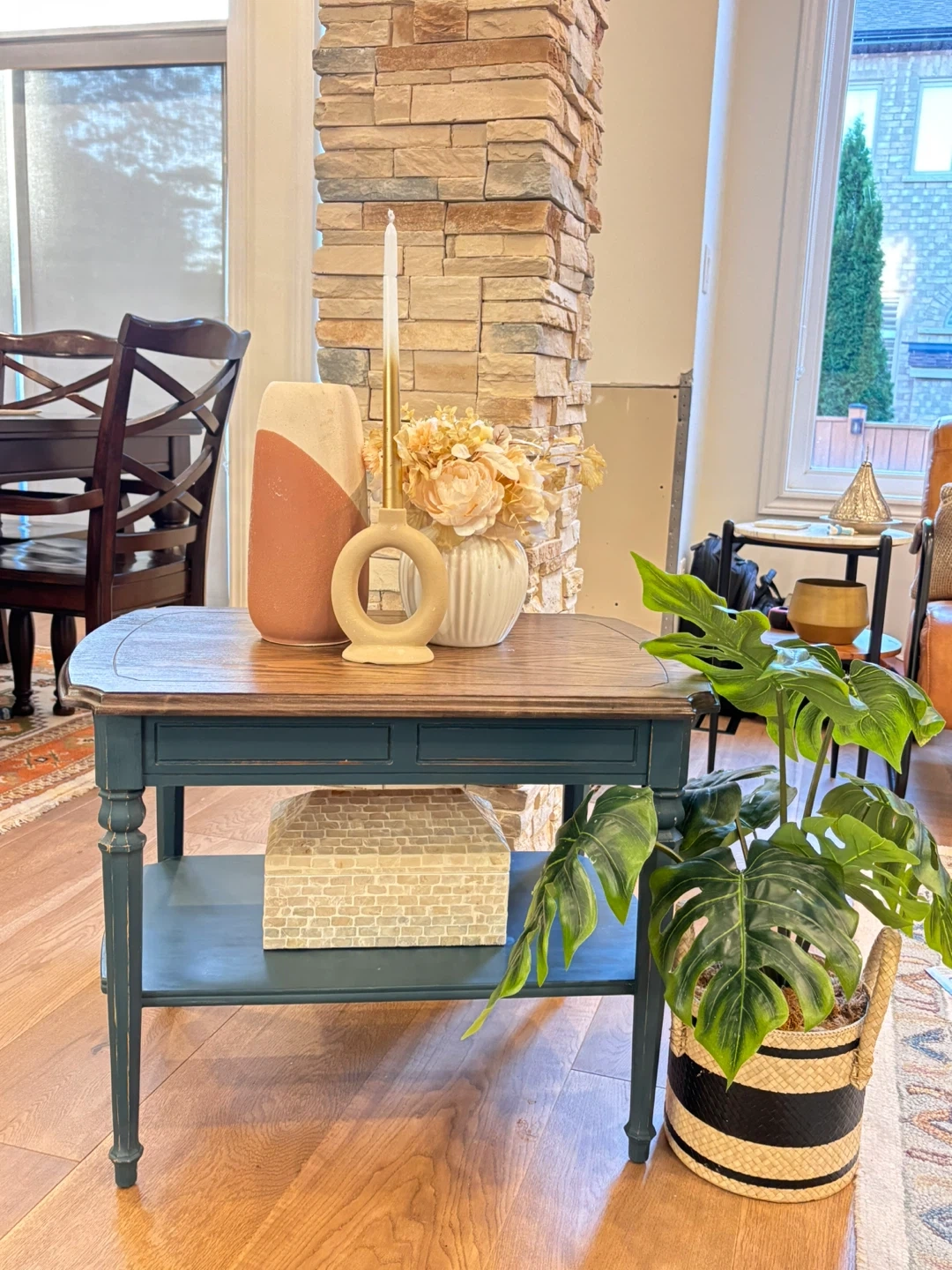 Round wooden dining table