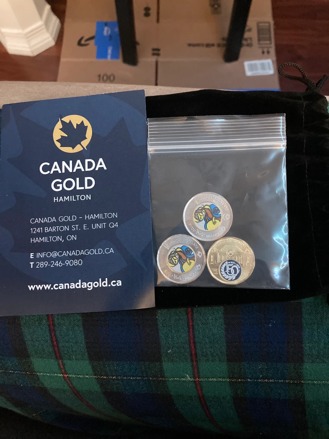 Have three uncirculated Canadian two dollars and one dollar with Prince Charles on the back. Special edition from an indigenous artist. Comes with black Velvet bag. On the way from Hamilton. Must come pick up at 79 Colvin crescent Thornhill.