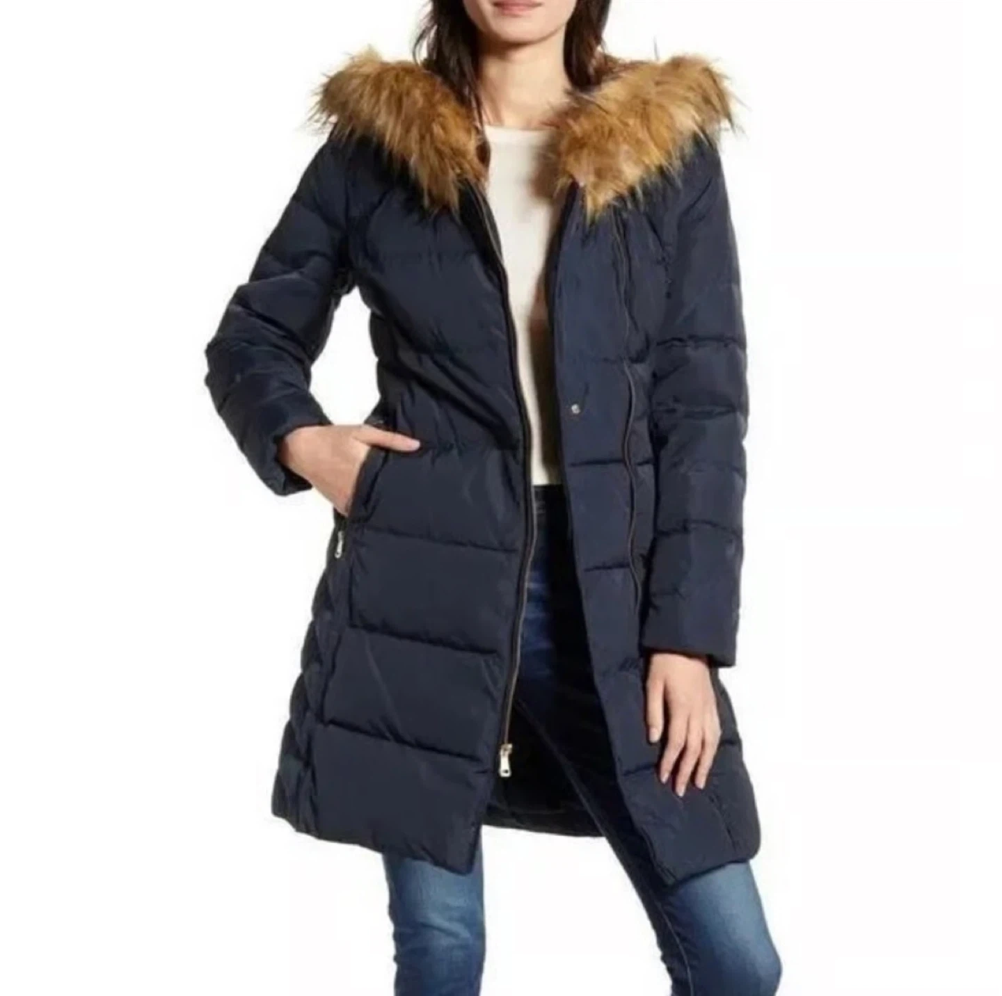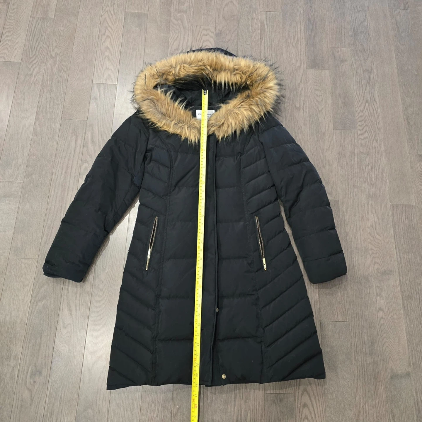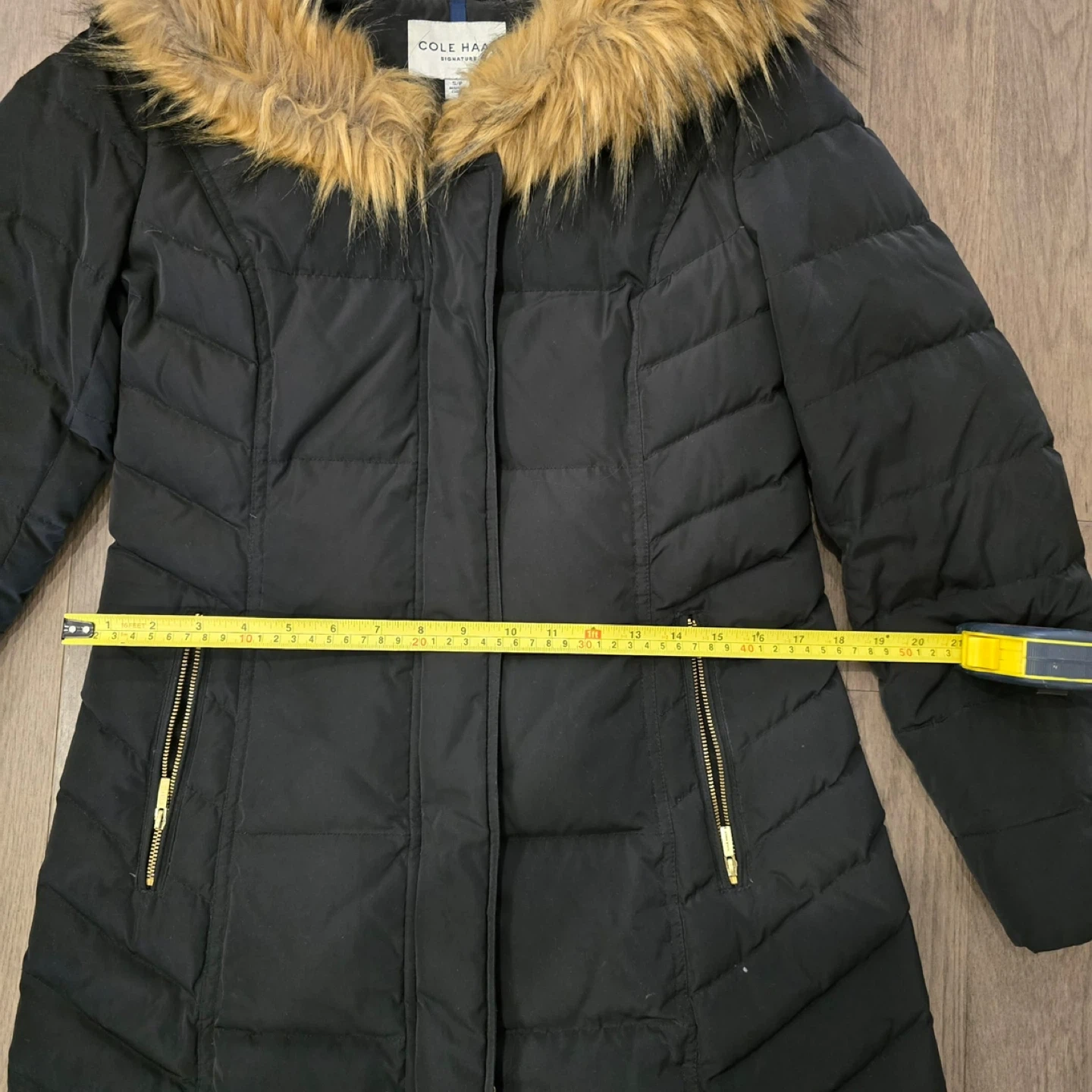 Cozy Cole Haan black down puffer coat with a faux fur-trimmed hood! It's in great condition and perfect for staying warm this winter. - Brand: Cole Haan - Size: Small - Colour: Black - Material: Down fill 80% new In great condition, minor worn Just a note: 2 inner seams are a bit torn, but you can easily stitch them back. (Please see photo.) Faux fur cannot be removed Orginal price: cad80+
