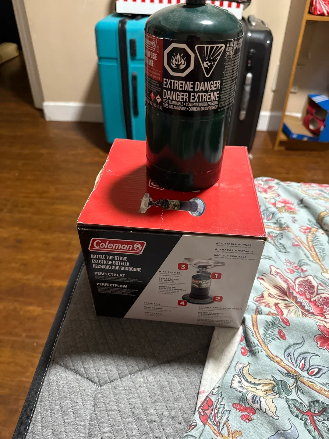 I'm selling a Coleman Bottle Top Stove with PerfectFlow technology. It comes with the adjustable burner. It's in great shape and ready for your next camping trip! Air mattress original price more than $200 Selling price $80 Stove original price around $60 Selling price $20 Tent for two person original around $60 Selling $20 Should be go before 20 sept. Pick can be after 4;30pm