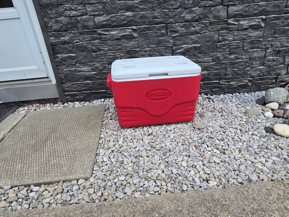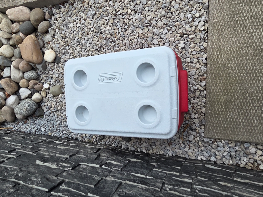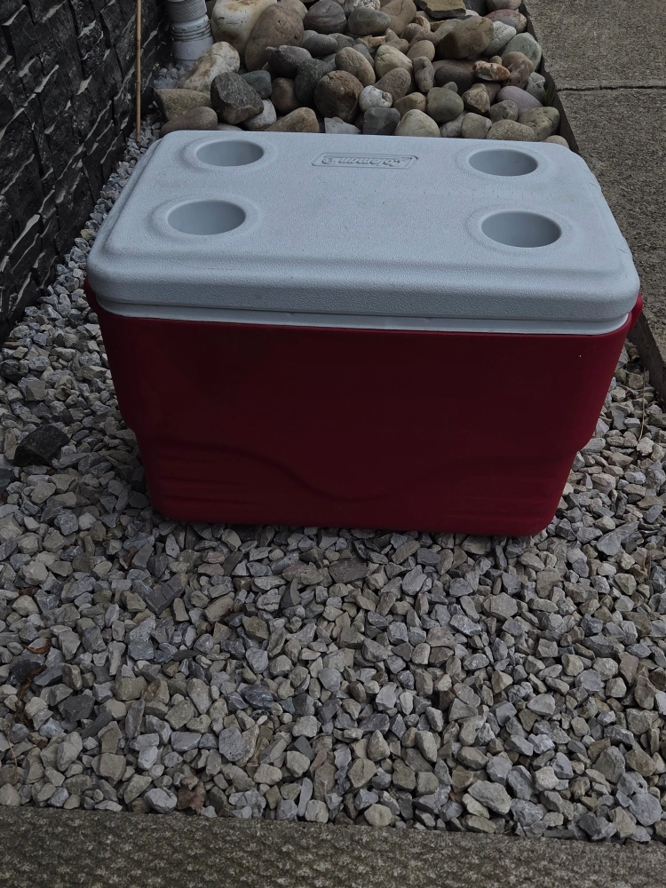 Selling a Coleman cooler (used only for a camping trip) It's in great shape and ready to keep your drinks and snacks cold for your next picnic or camping trip! It has four cup holders on top, perfect for holding your drinks securely.