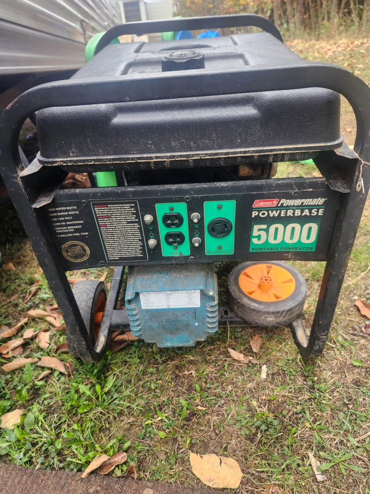 Selling a Coleman Powermate 5000 portable generator. It's a reliable generator for various power needs. It has a 5000-watt capacity and a 5-gallon fuel tank. needs tuned up