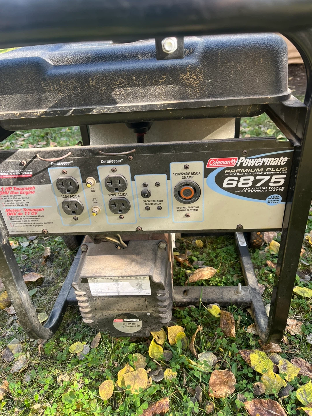 Selling a Coleman Powermate Premium Plus 6875 portable electric generator. It has a 11 HP Tecumseh OHV engine and provides 6875 maximum watts and 5500 running watts. Great for power outages or outdoor projects!