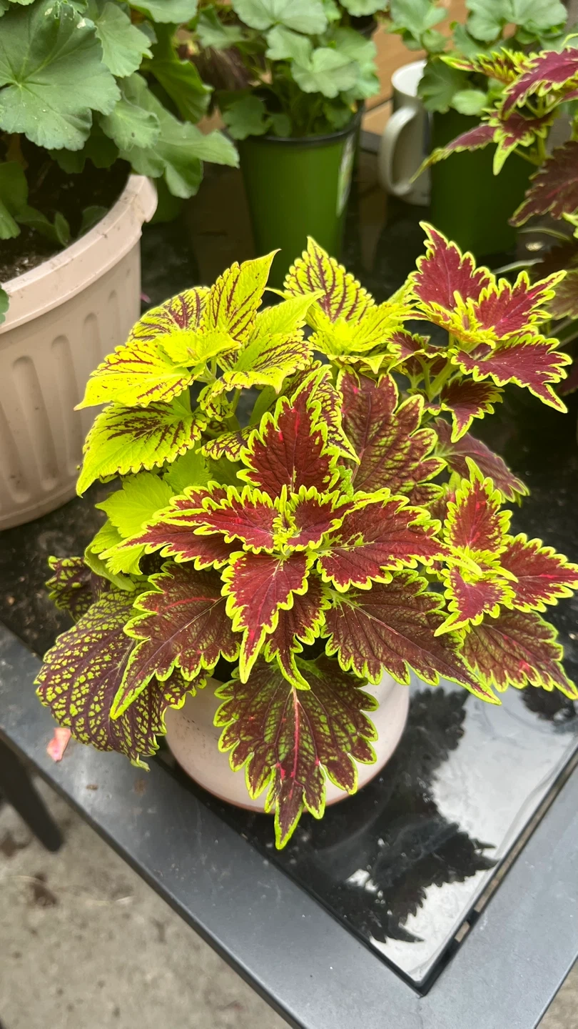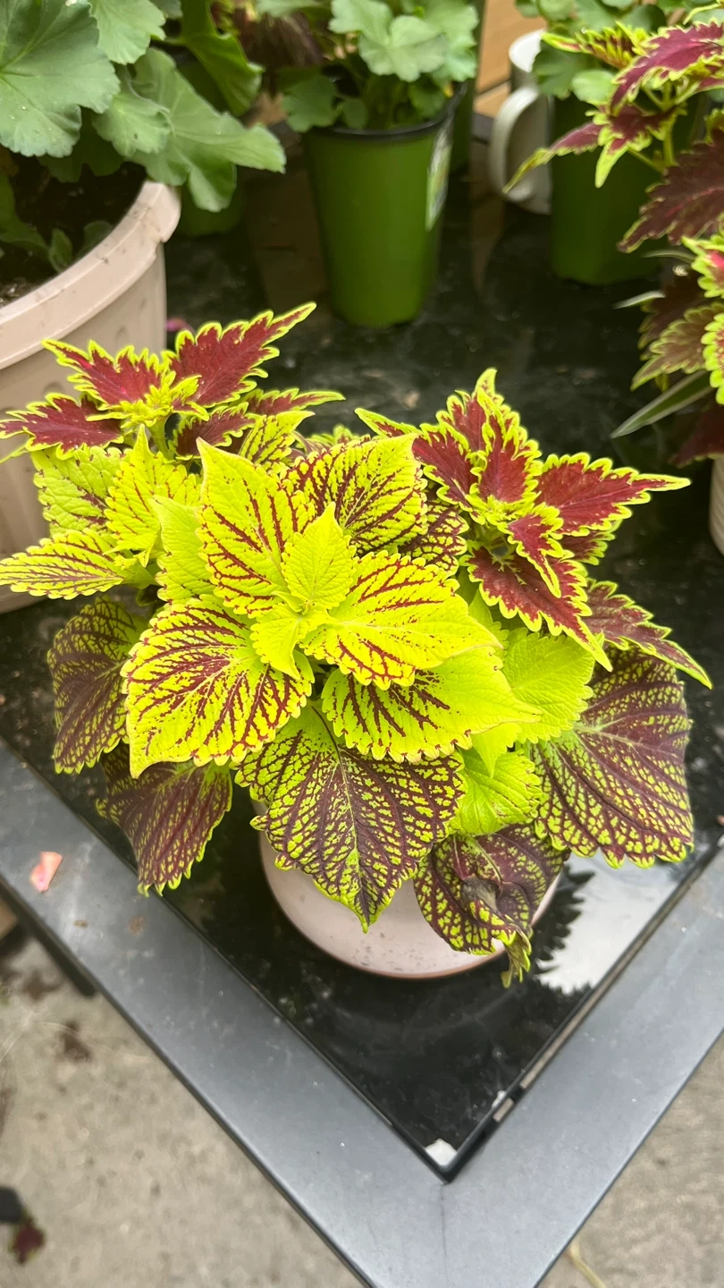 I'm selling a coleus plant. It has vibrant green and red leaves. It would look great in any home!