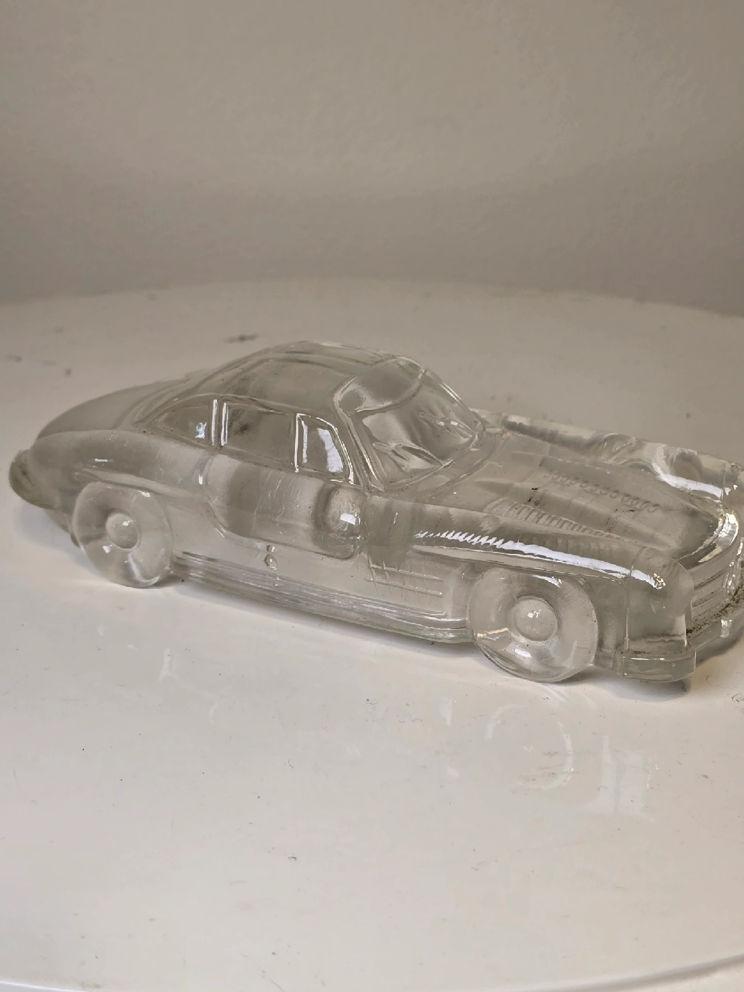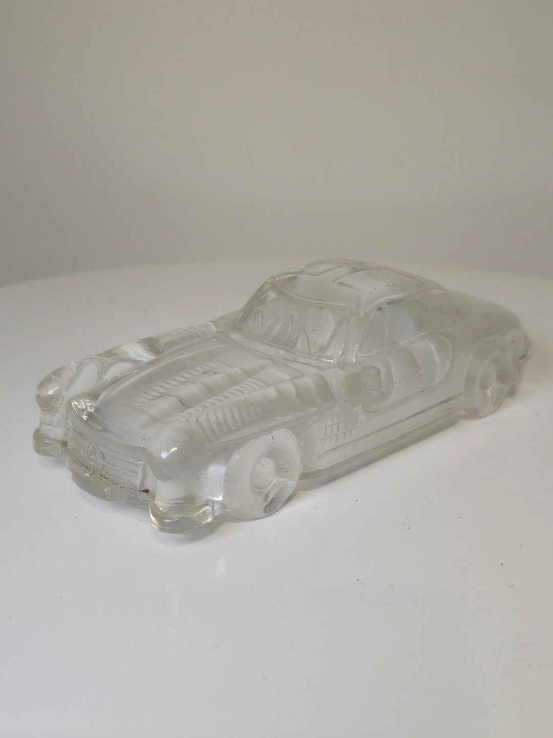 A clear model of a Mercedes-Benz 300SL. It's a cool little display piece!